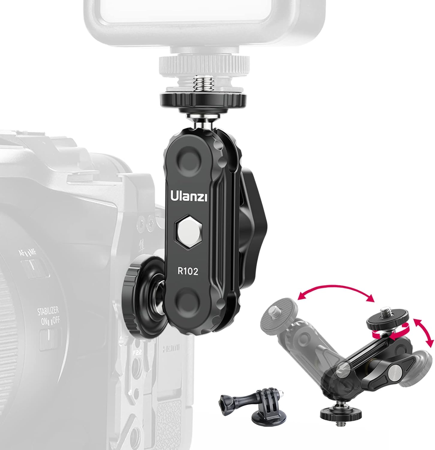 Ulanzi R102 マジックアーム 1/4ネジ ダブルボールヘッド Gopro用マウント付き アクセサリー 多機能ダブルボールアダプター