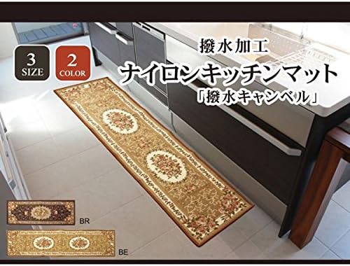 ナイロン 花柄 キッチンマット 『撥水キャンベル』 ブラウン 約44×120cm