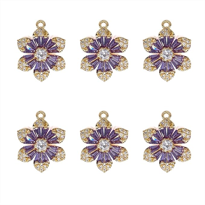 ZeaLian ジルコニア クリスタルフラワー 金メッキ