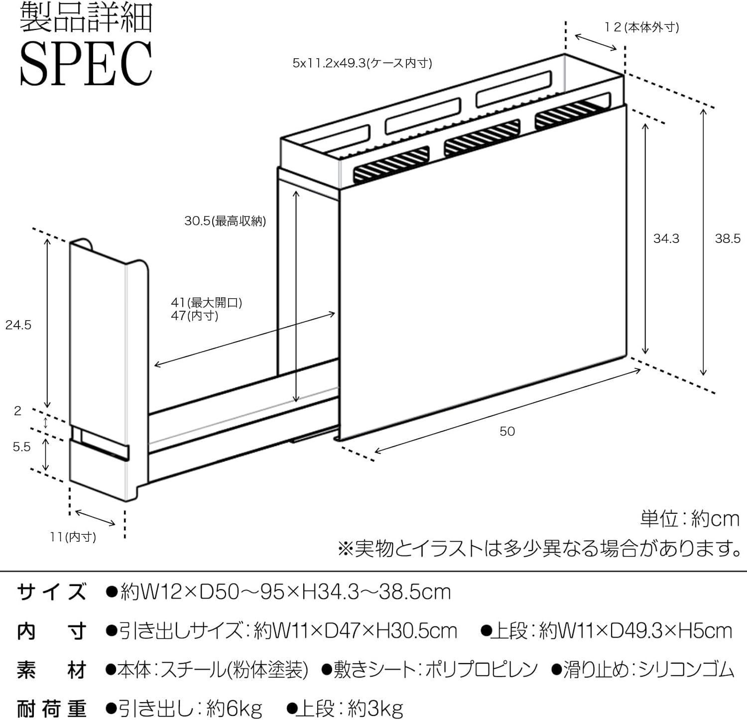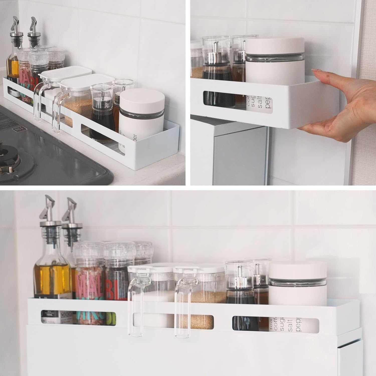 調味料ラック 引き出しラック 上部ラック移動可能 調味料 スパイス ボトル 省スペース コンロ横 シンク上 大容量 キッチン収納 (白ラック)