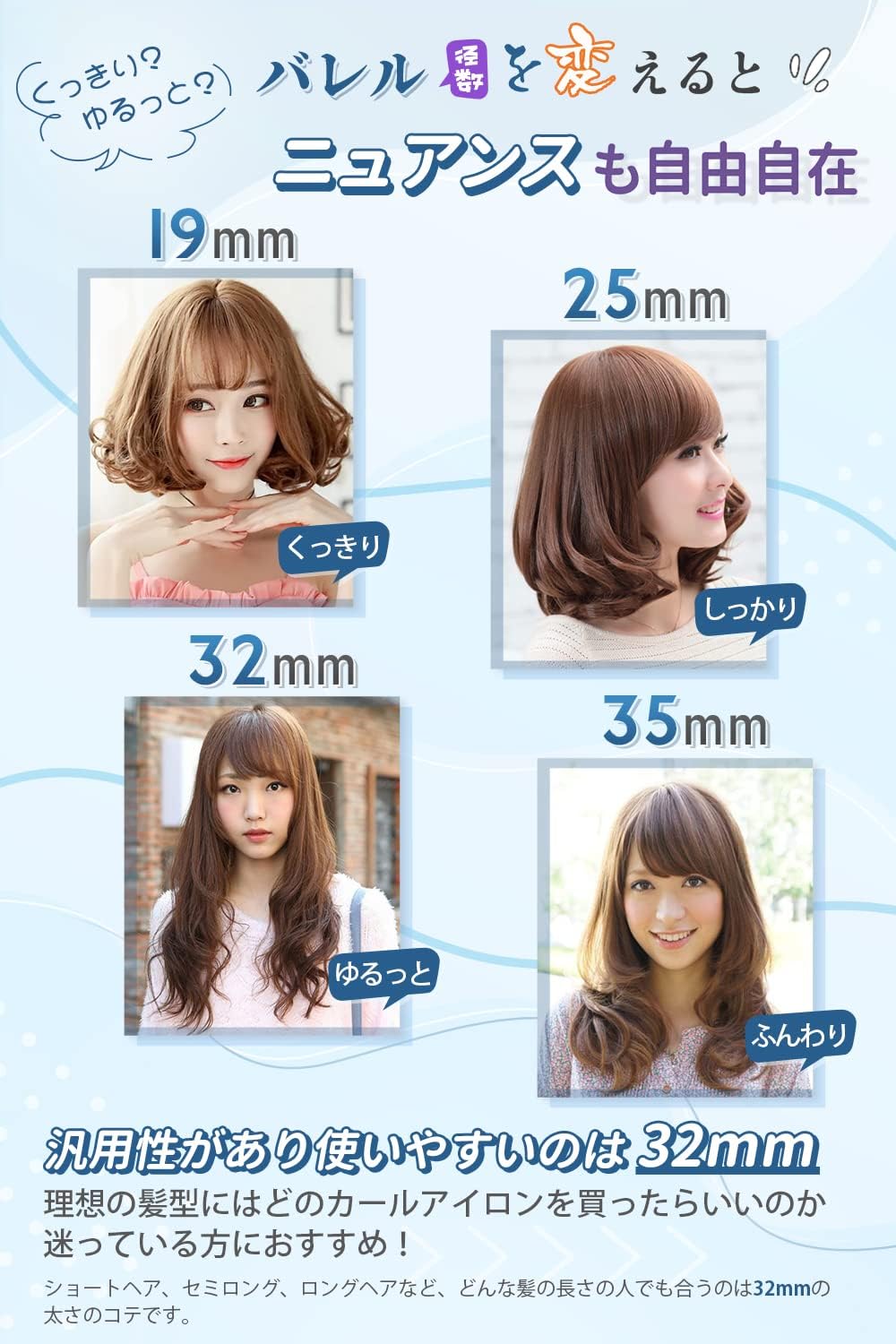 カールアイロン コテ 32mm カーリングアイロン 5段階温度調整 プロ仕様 MAX220℃