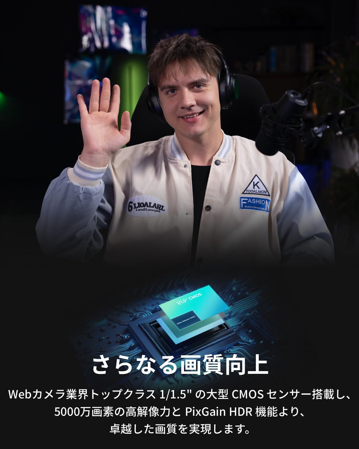 AI自動追跡 ウェブカメラ HDR 4K 5000万画素 全画素AF ジェスチャー 音声制御 ノイキャンマイク 会議 ライブ配信 ビデオ通話 PC Mac Windows