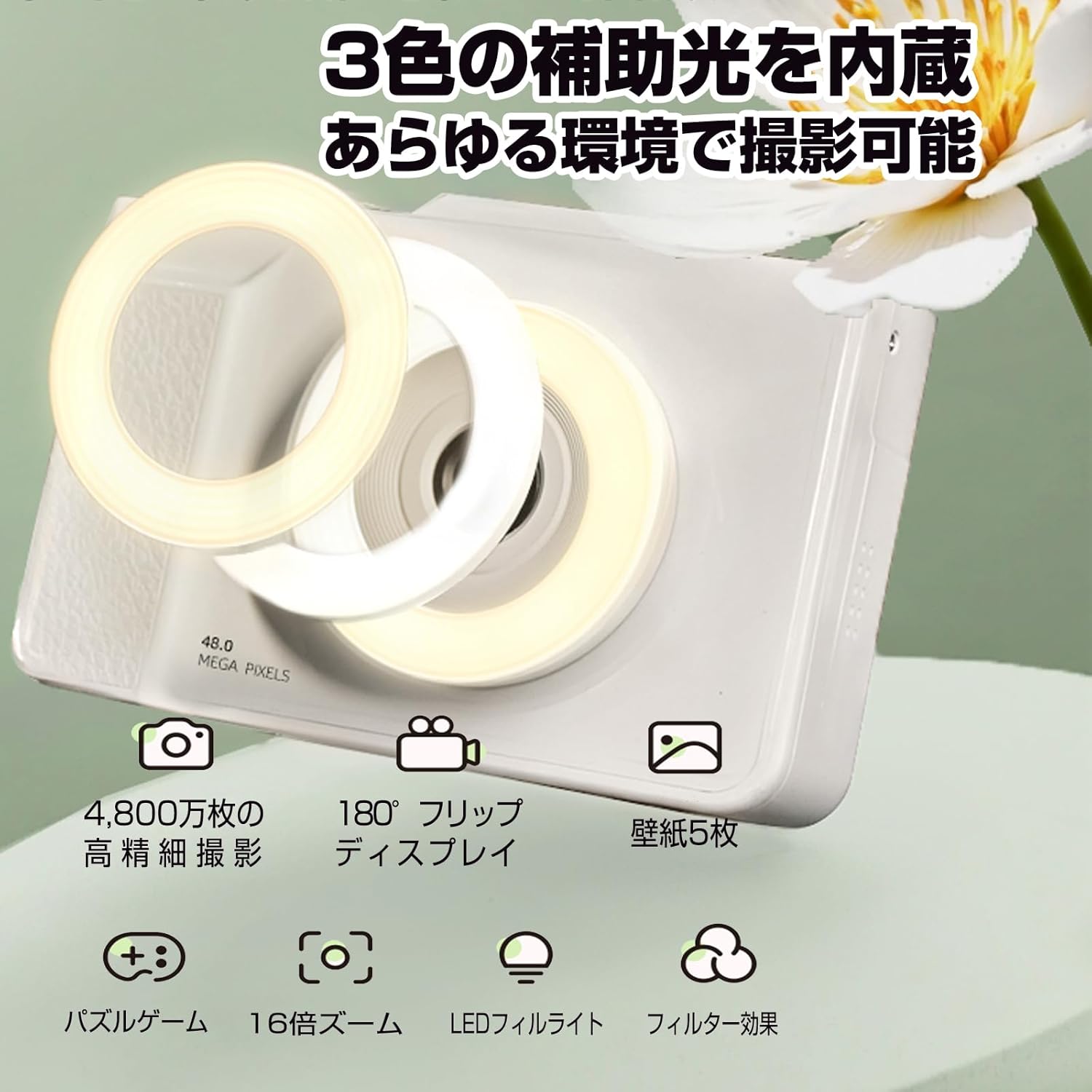 2.8インチ液晶、16倍デジタルズーム、1080P動画撮影、32GB Micro SDカード付属、完璧な自撮り用のフリップトップデザイン