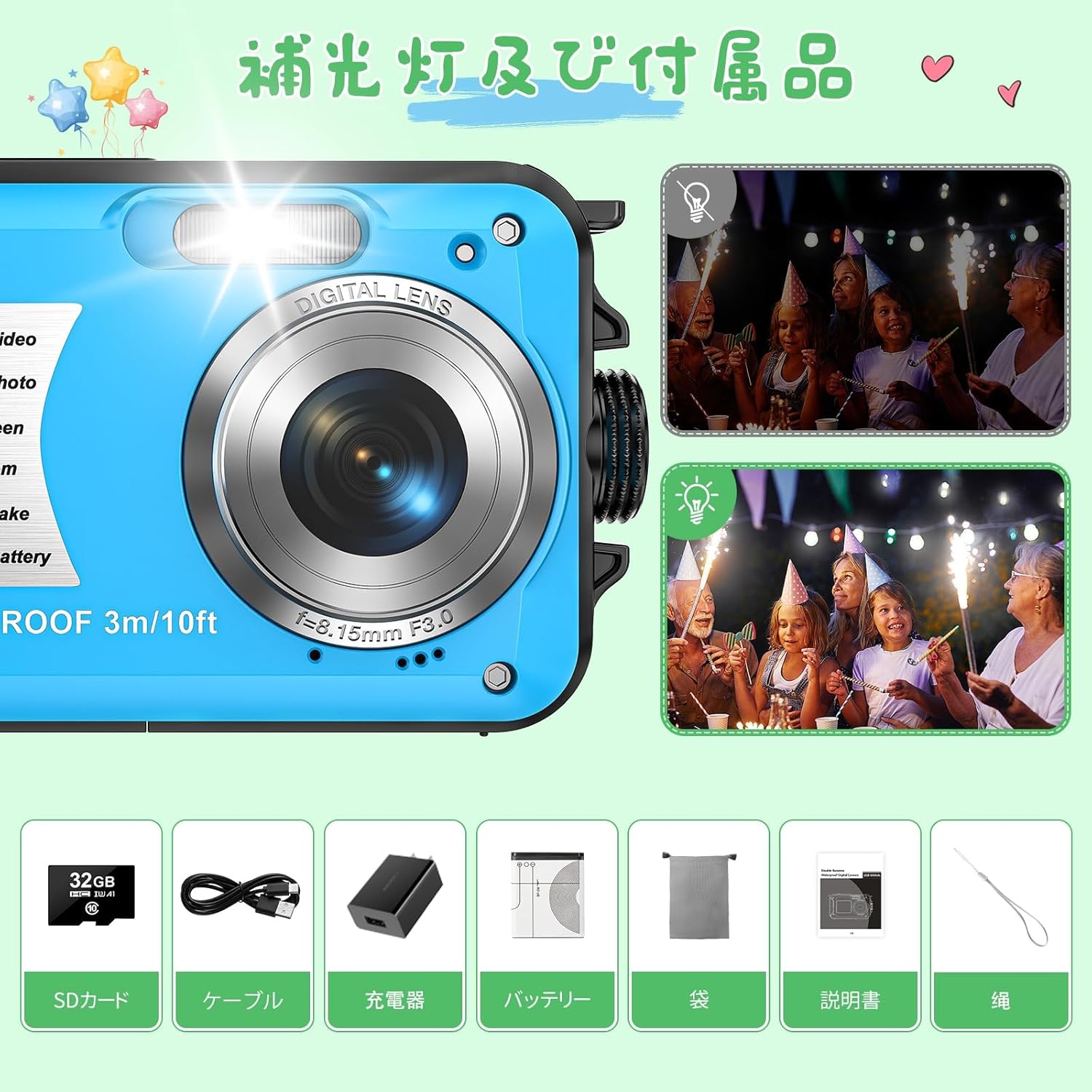 セルフタイマー 16倍デジタルズーム 防水デジカメ カメラ・写真機能
