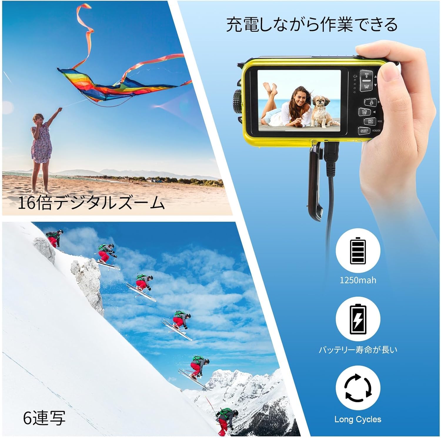 3M防水 ケース不要 水中カメラ デュアルスクリーン 自撮可能 操作簡単