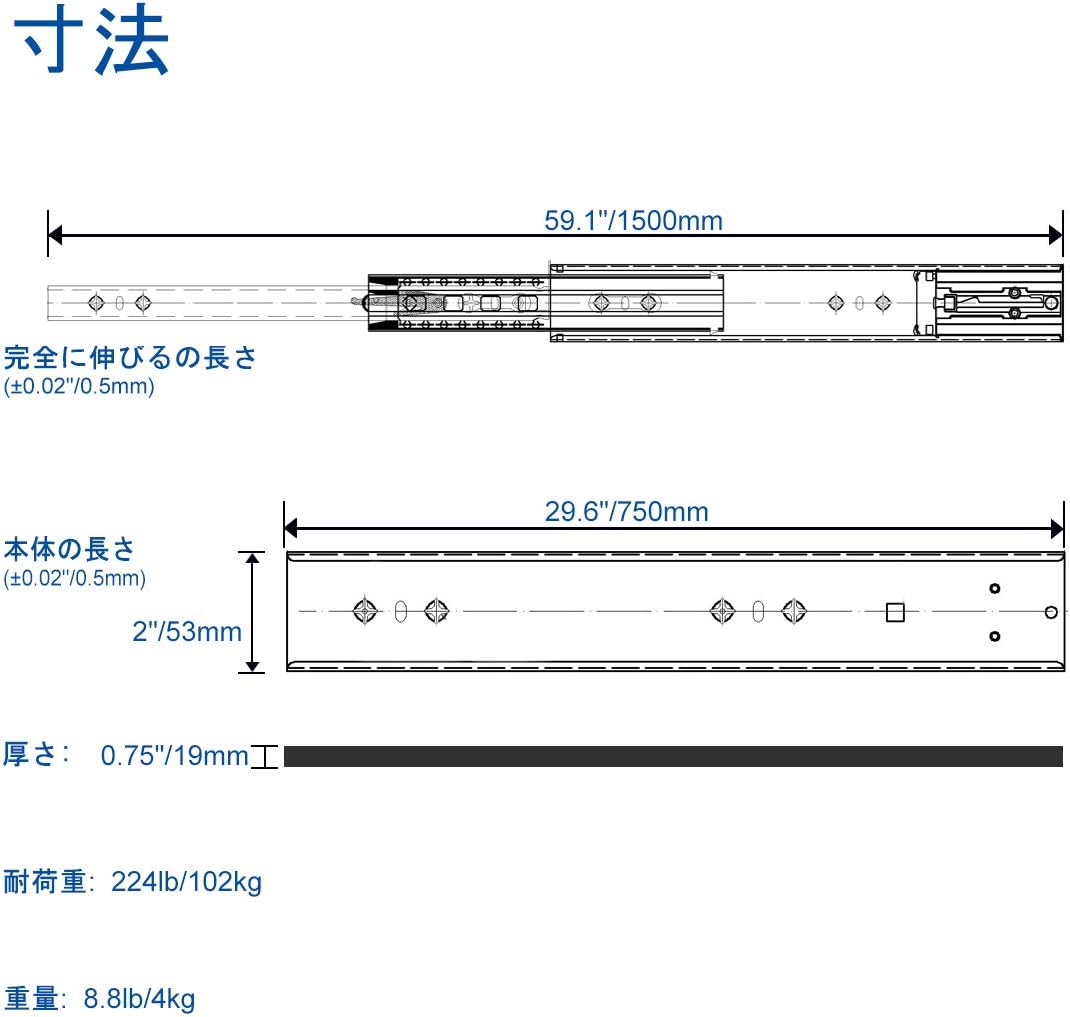 レール 750mm Vk2053 ソフトクローズ 重量用スライドレール