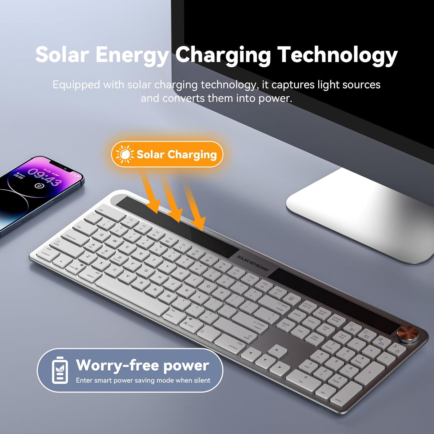 ワイヤレスソーラー充電式キーボード