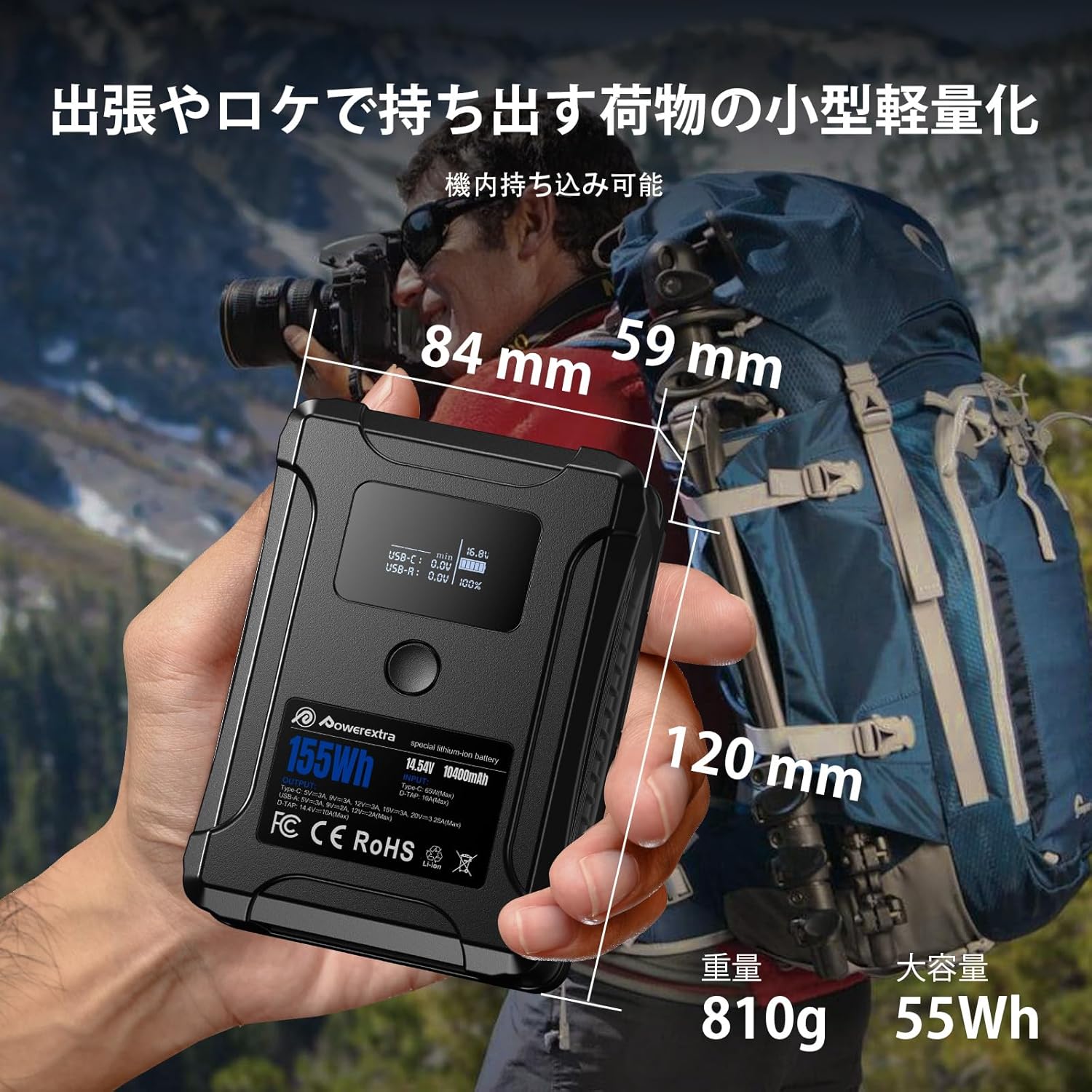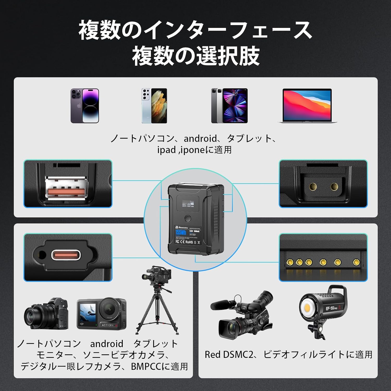 大容量10400mAh 大容量ビデオカメラ、撮影ライト、モニター、スマホ用バッテリー
