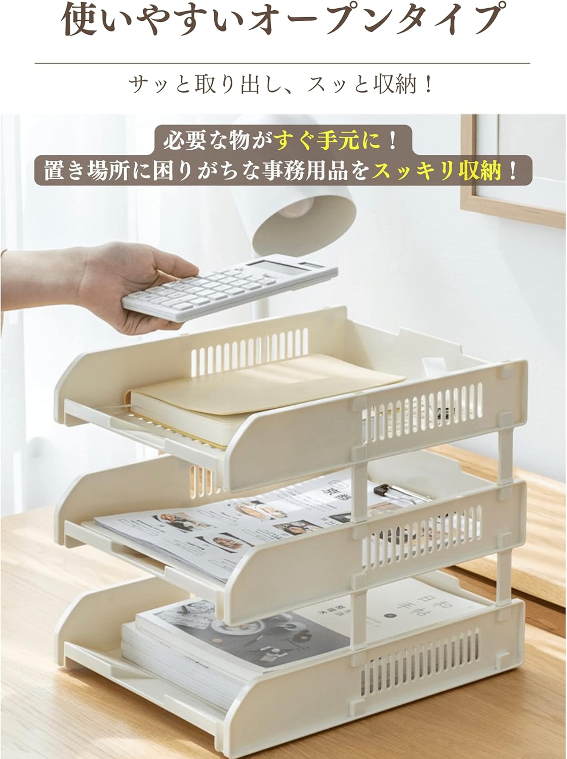 書類トレー レタートレー 書類入れ A4 浅型 積み重ね可能 卓上収納 ファイルラック 新聞 雑誌 クリアファイル シャツケース 整理整頓 ホワイト (3段)