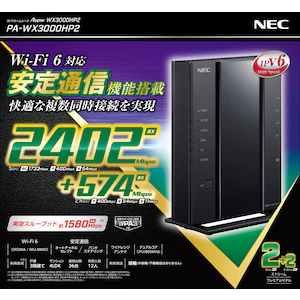 NEC11ax(Wi-Fi 6)対応 無線LANルーター親機 (2402+574Mbps)PA-WX3000HP2