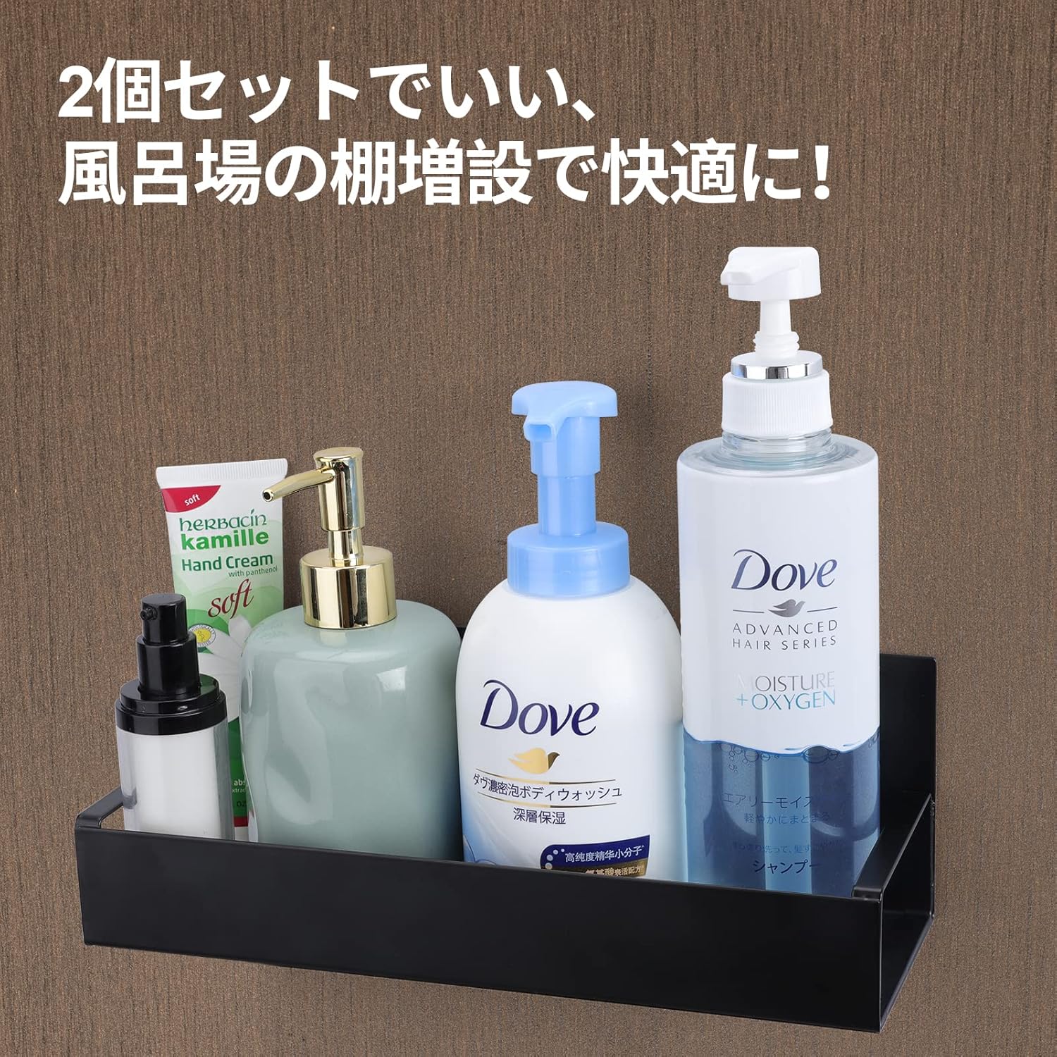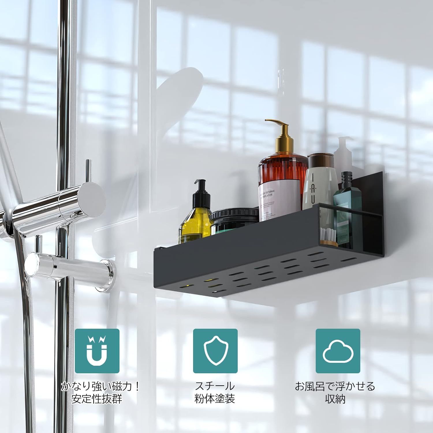 超強力 磁石ラック 壁掛け 水切り 約W29.5×D10×H10cm スパイスラック キッチン マグネット 収納 棚 冷蔵庫サイドラック 2段式 ブラック