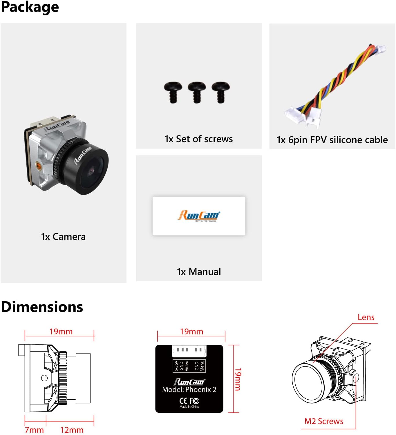 RunCam Phoenix 2 広角視野 小型カメラ 超低遅延 ?/2.0口径レンズ RCドローン用