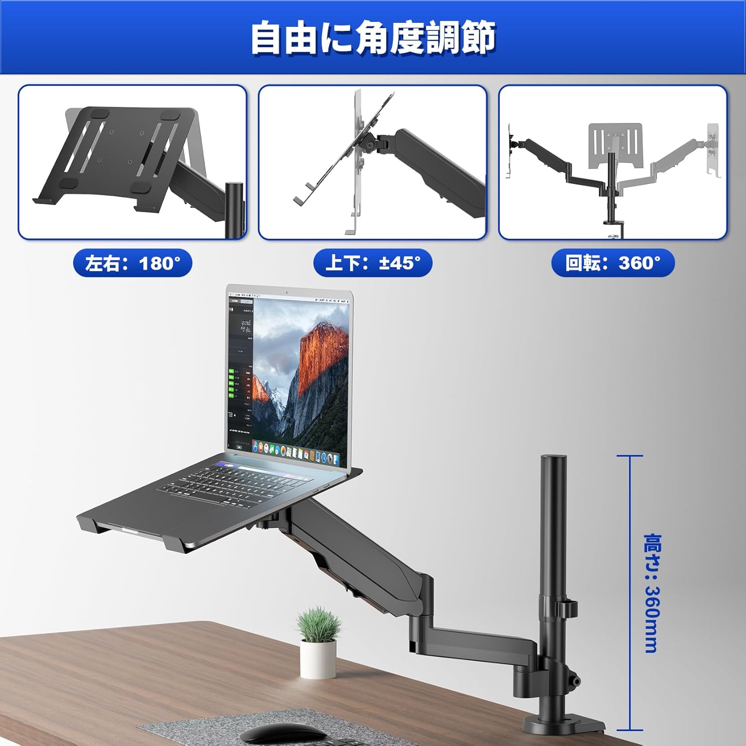 ガススプリング式 ノートPCスタンド ガス圧式 17インチノートパソコン 対応