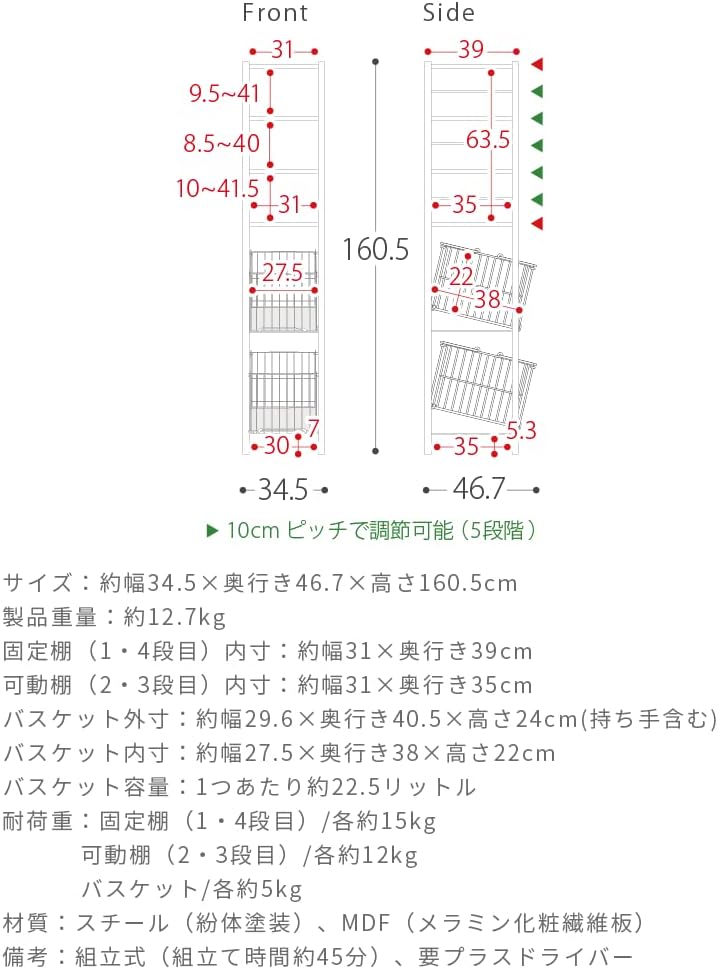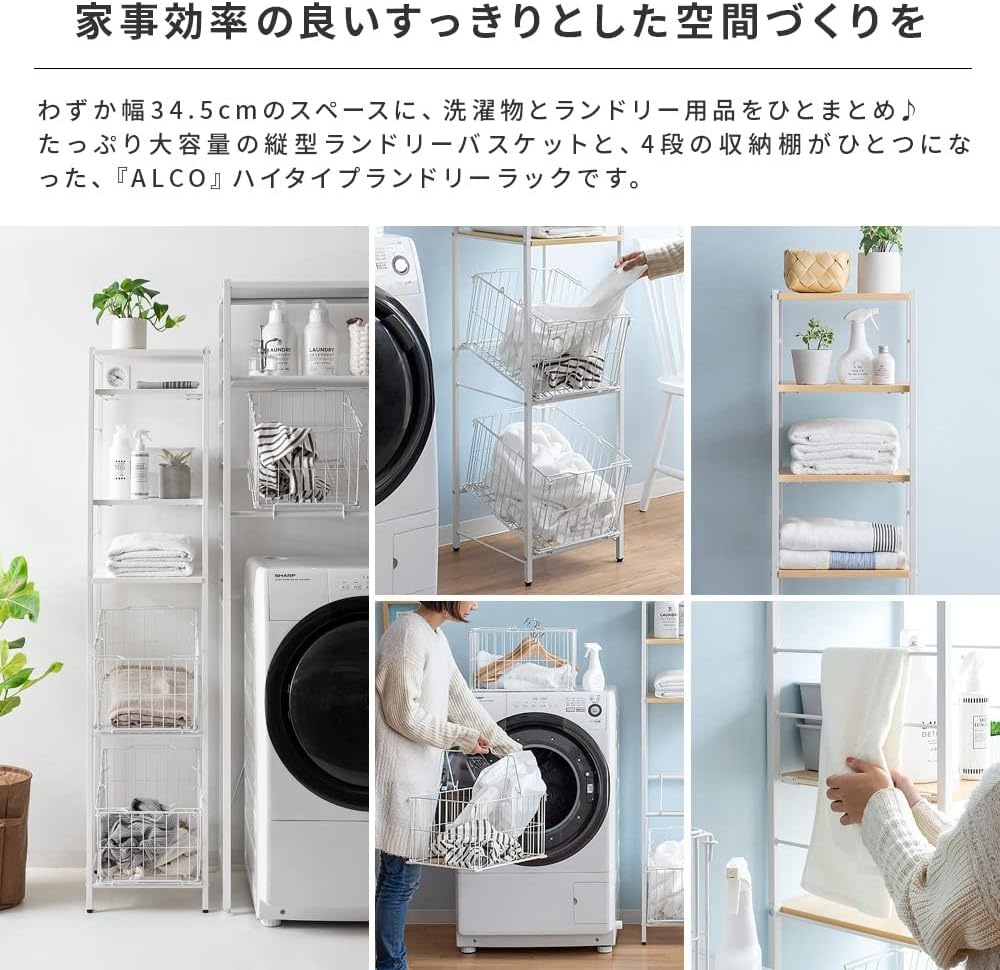 ランドリーラック スリム おしゃれ 棚付きランドリーバスケット
