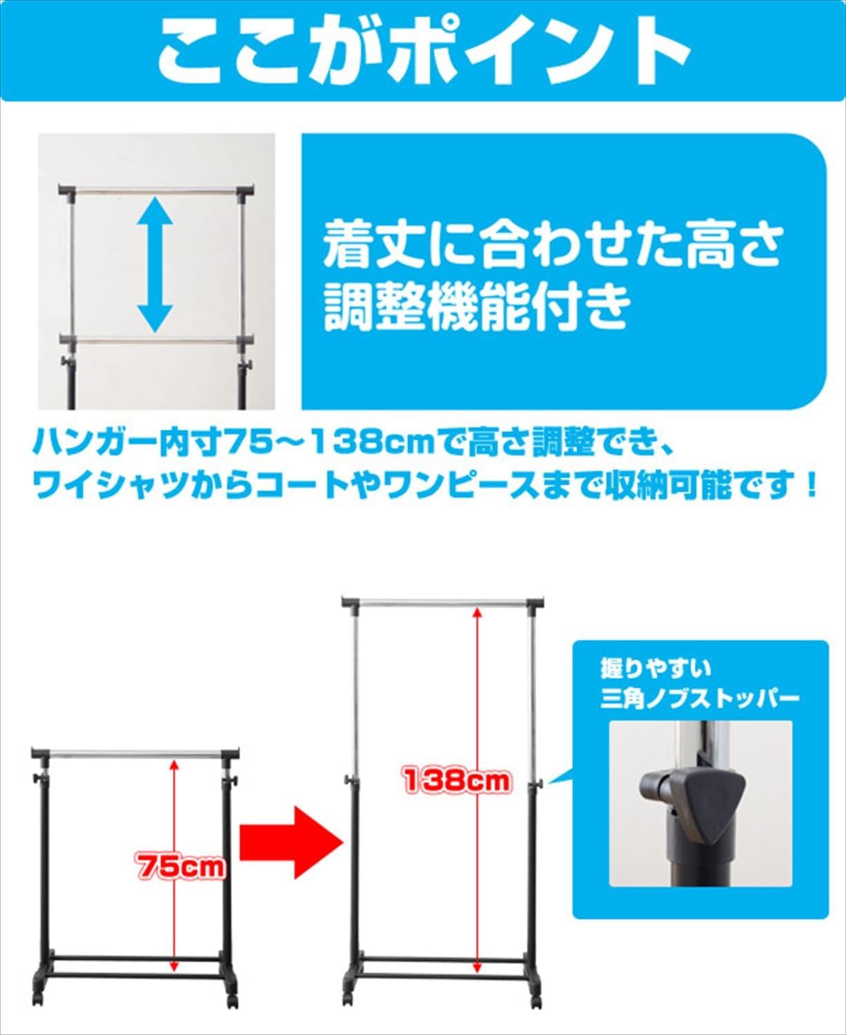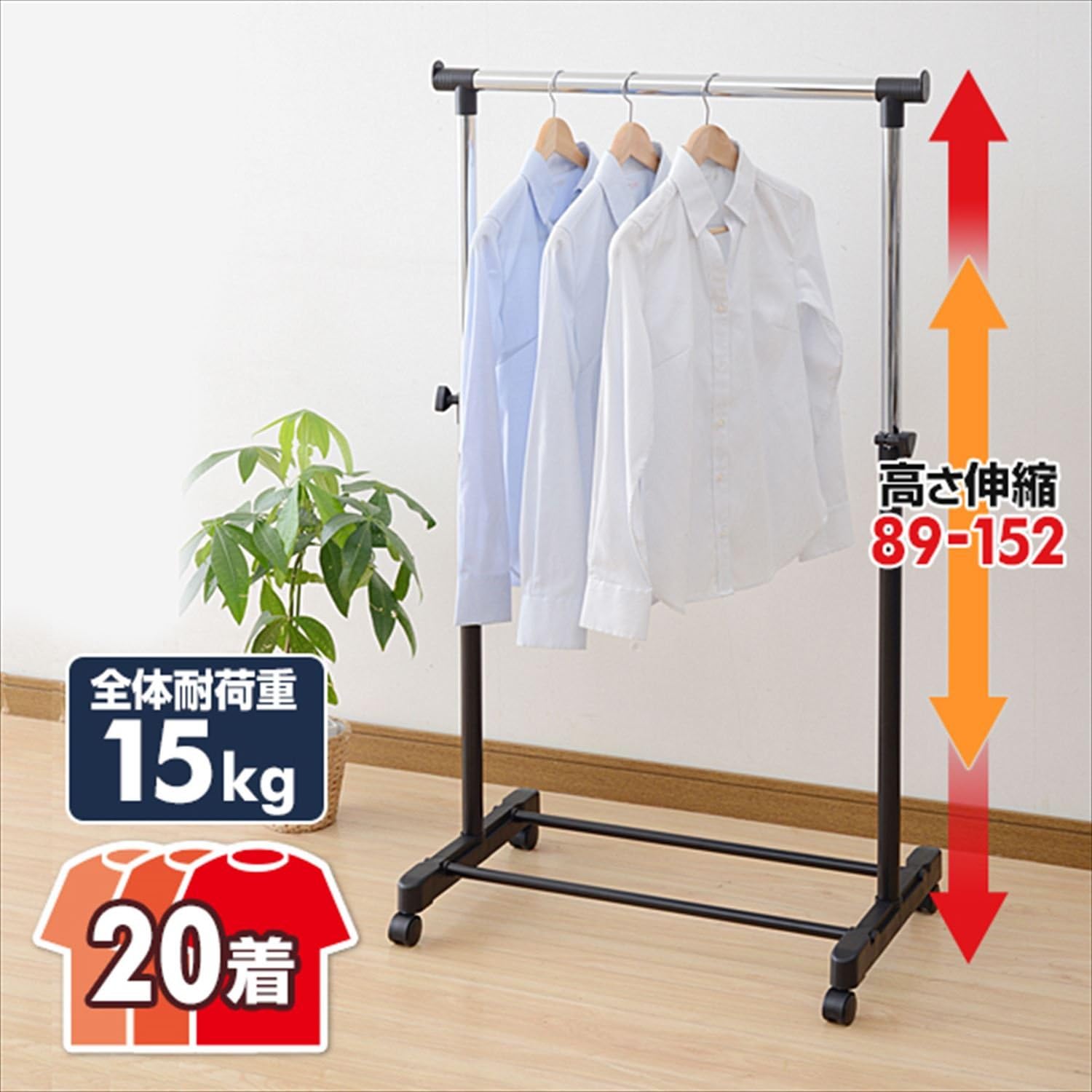 山善(YAMAZEN) 高さ伸縮パイプハンガーラック