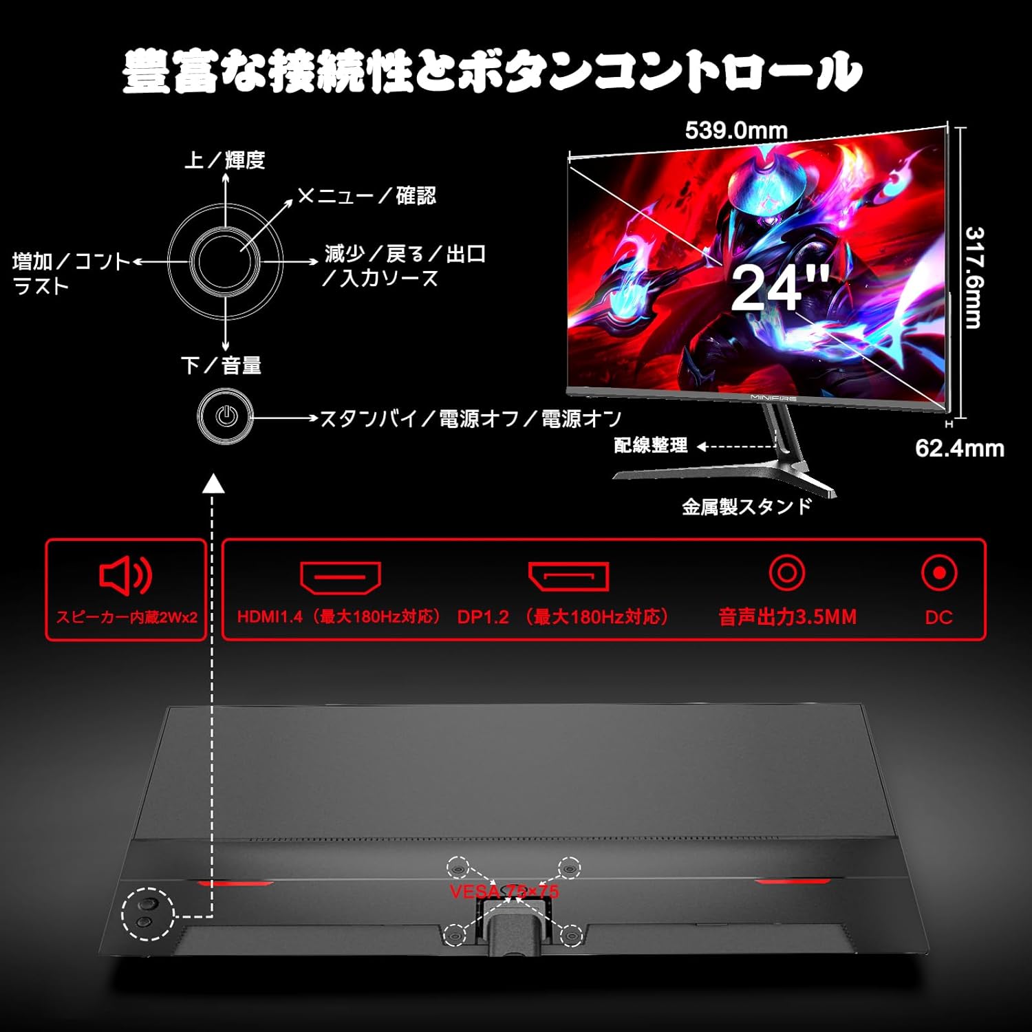 スピーカー内蔵 メタルスタンド 没入型ゲーム体験 MFG24C1
