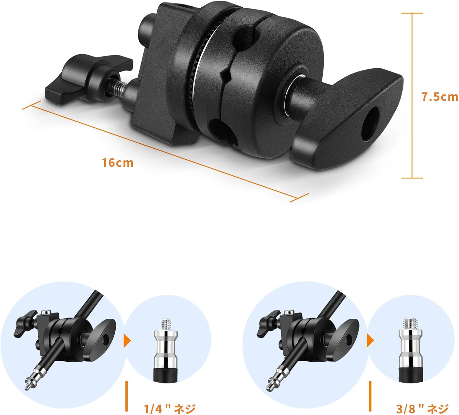 2個のグリップヘッド付き 128cmブームアーム アルミ合金製