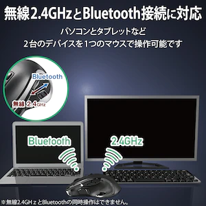 エレコム2.4GHz/Bluetoothワイヤレス切替対応 Ultimate Blueマウス ハードウェアマクロ搭載 高速スクロール 8ボタン Lサイズ(ブラック)DUALシリーズM-DC01MBBK LF0088
