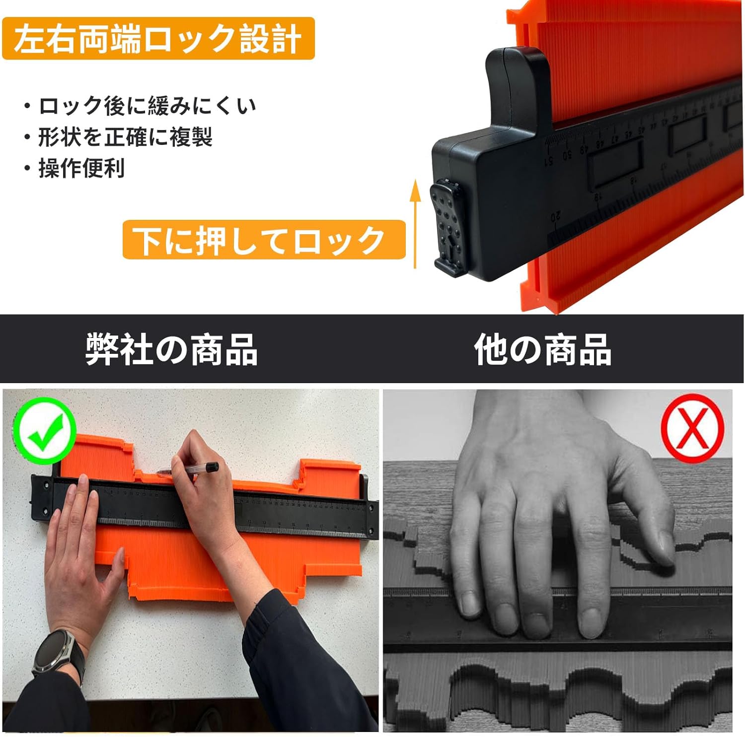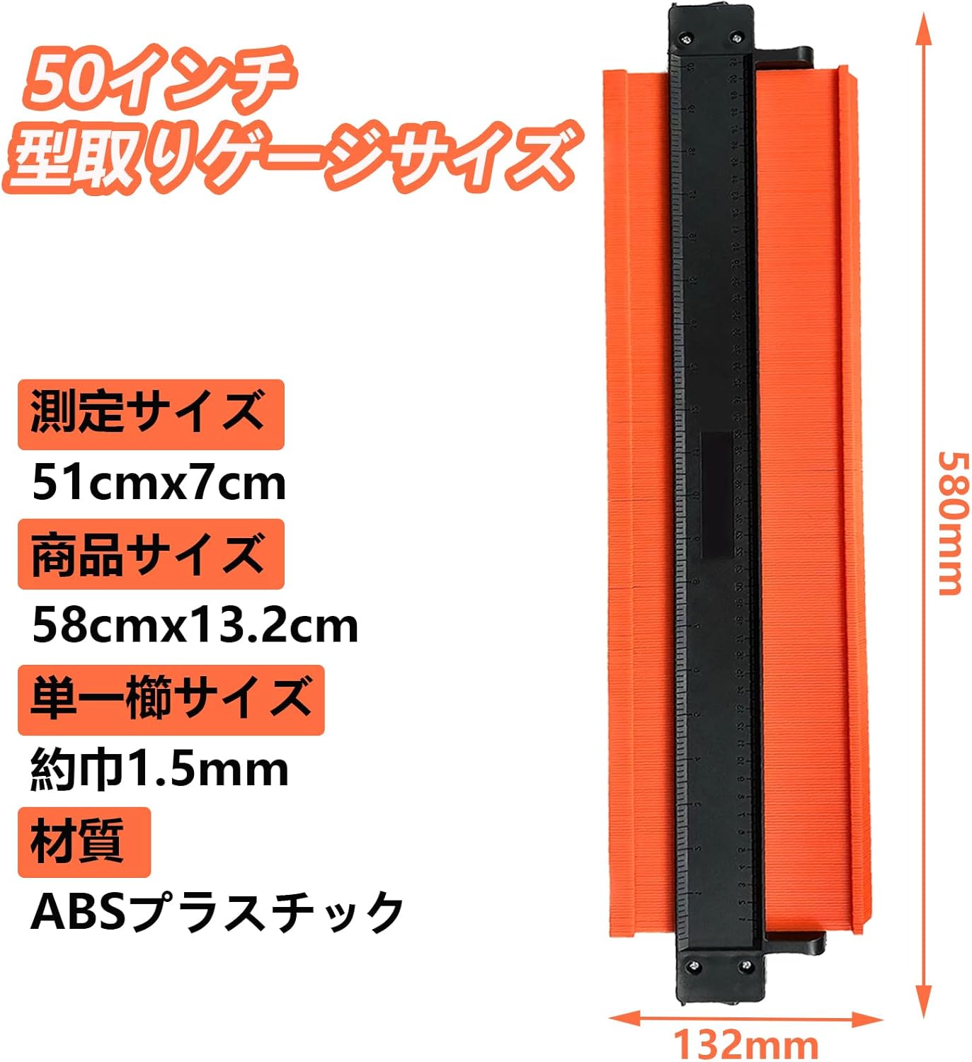 測定サイズ51cm*7.5cmコンターゲージ 曲線定規 CMとInchの目盛り付き