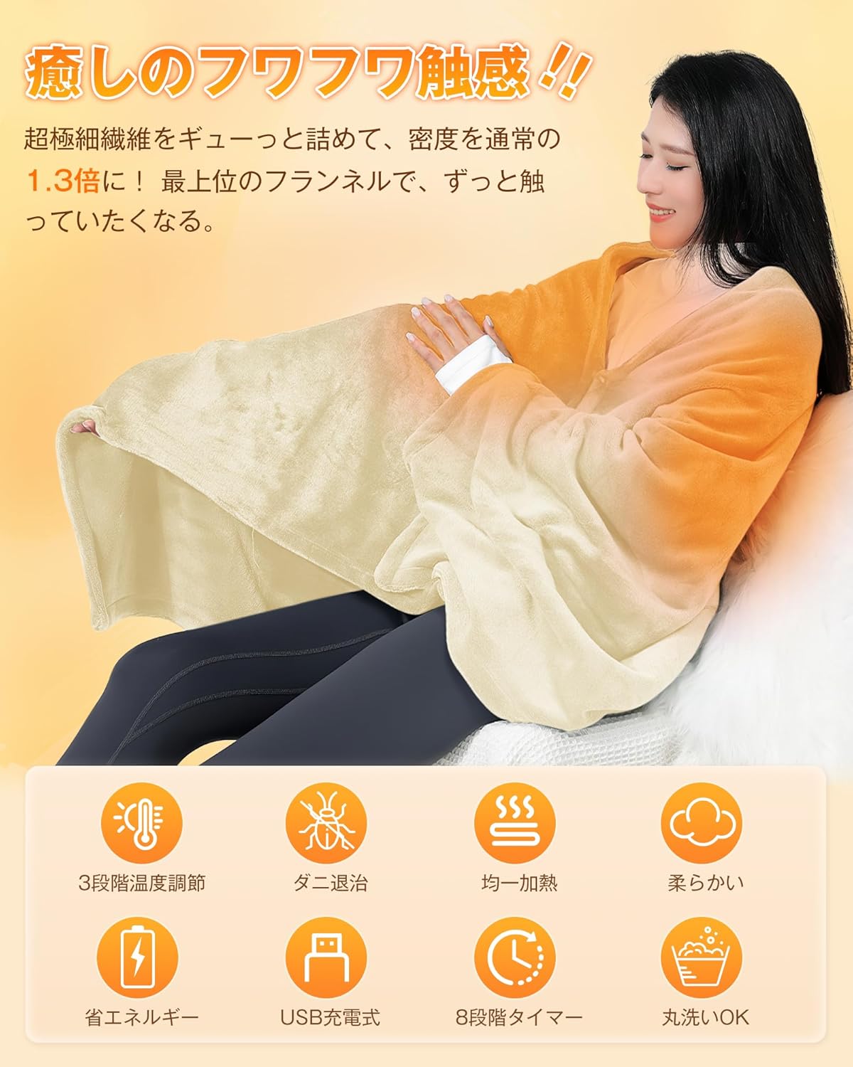 電気ブランケット 3段階温度調整 電気ひざ掛け 掛け敷き毛布 USB延長ケーブル付