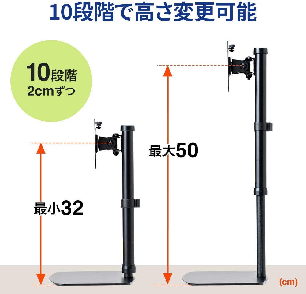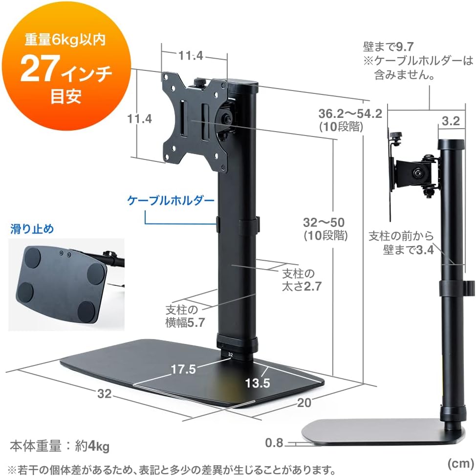 置き型 1画面 27インチまで 耐荷重6kg 高さ変更 360度回転 上下左右可動 ブラック