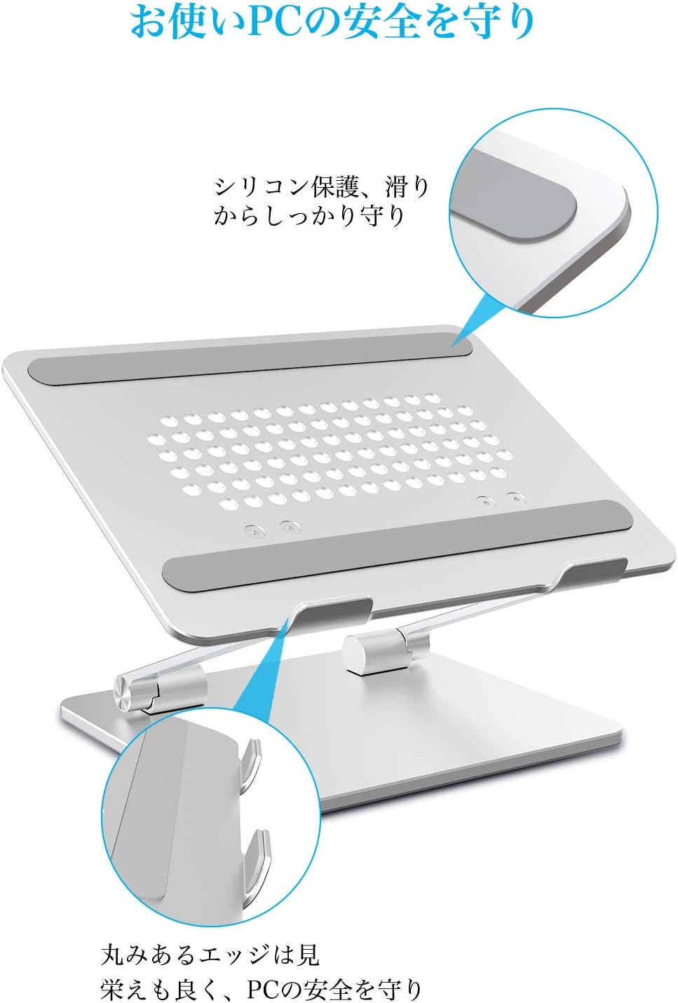 PC タブレットスタンド 無段階高さ調整可能 姿勢改善 腰痛/猫背解消 人間工学設計 折りたたみ式 滑り止め アルミ合金製