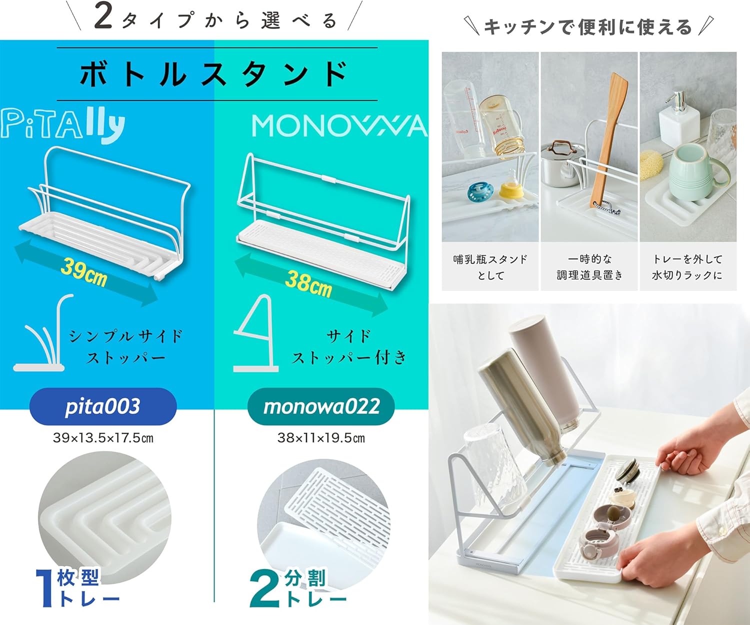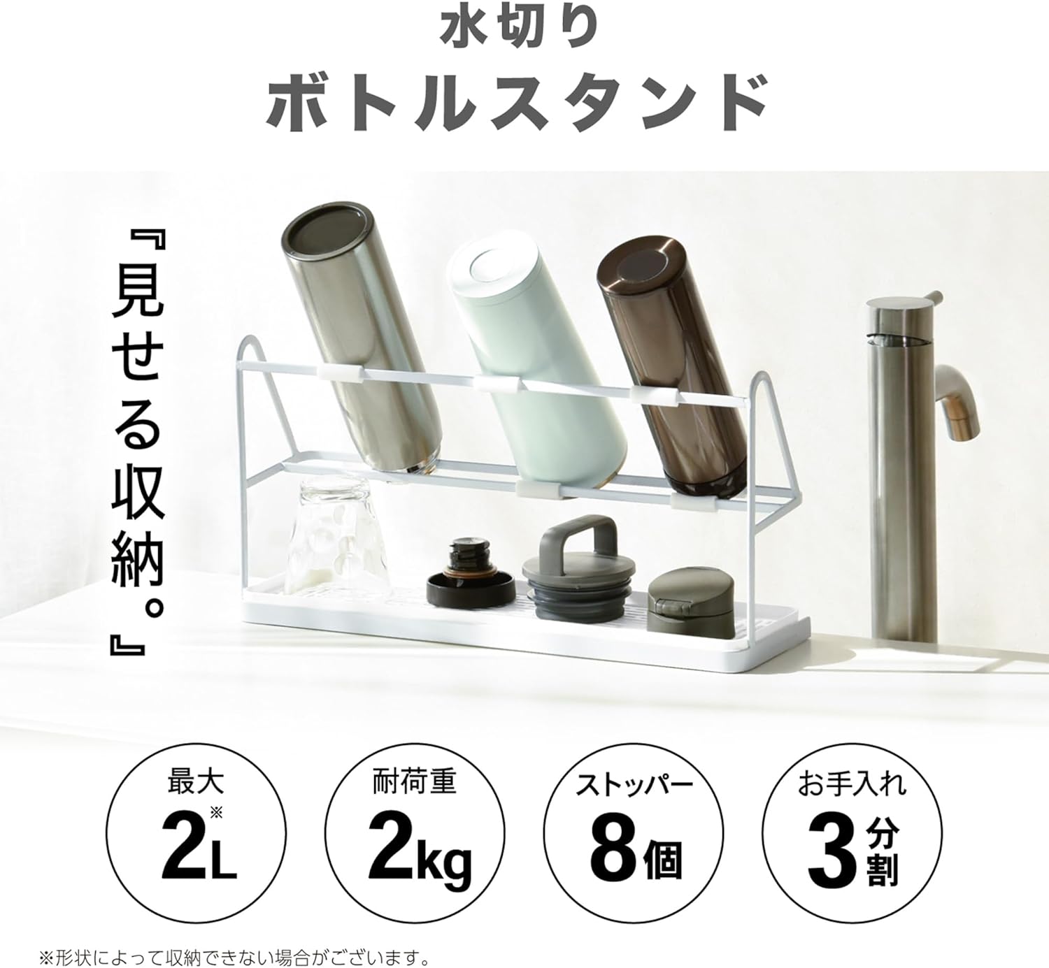 哺乳瓶 省スペース 水筒スタンド 水筒干し ワイドボトルスタンド トレー 水切りラック 水切りかご ボトルストッカー ジャグ キッチン収納