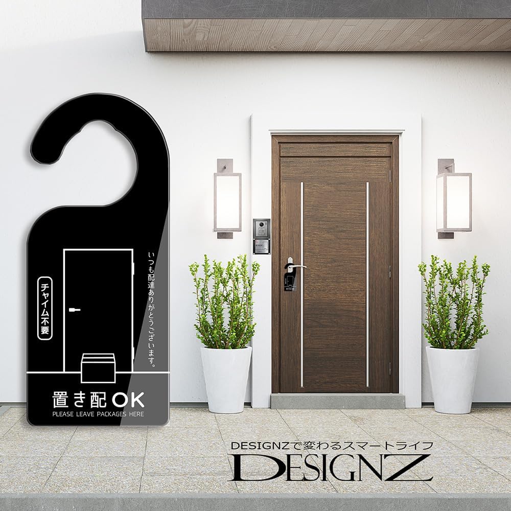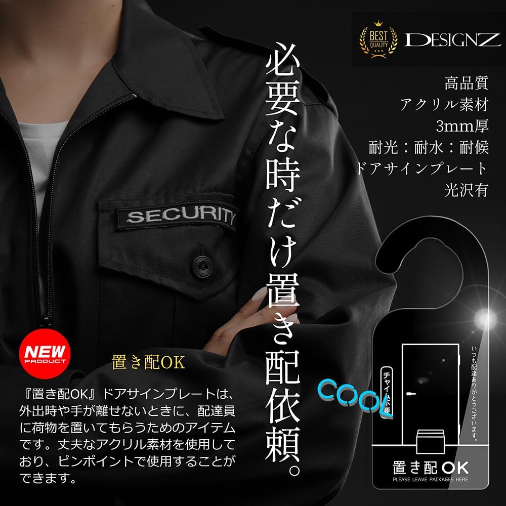 ドアノブサインプレート (置き配OK) アクリル素材 (屋外内用:耐光/耐水/耐候) 日本製 (置き配・ブラック)