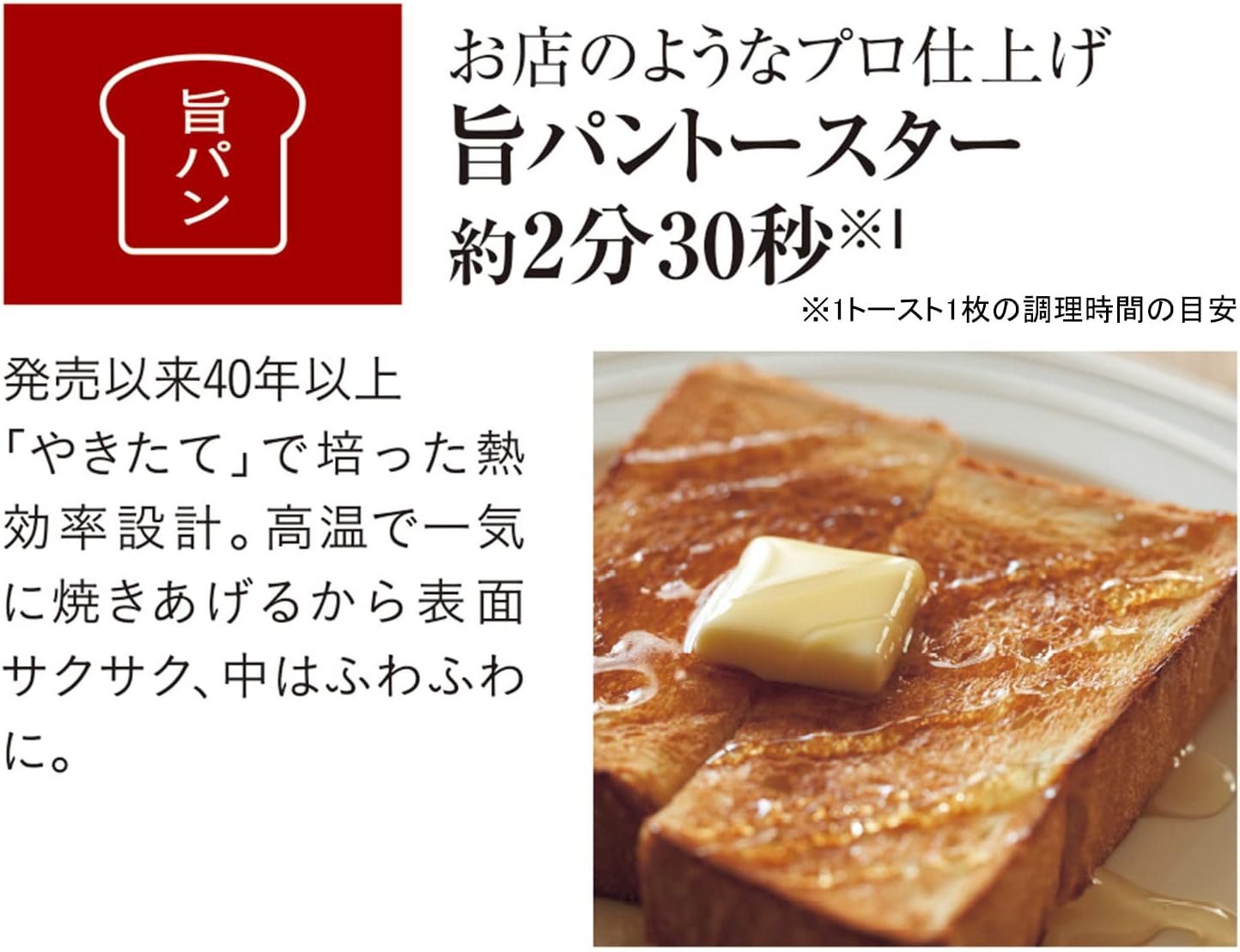 コンパクトでも庫内広々「コンパクト&ワイド庫内」…トーストは一度に2枚焼け、ピザは直径20?(8インチ)が丸ごと焼けるサイズです。