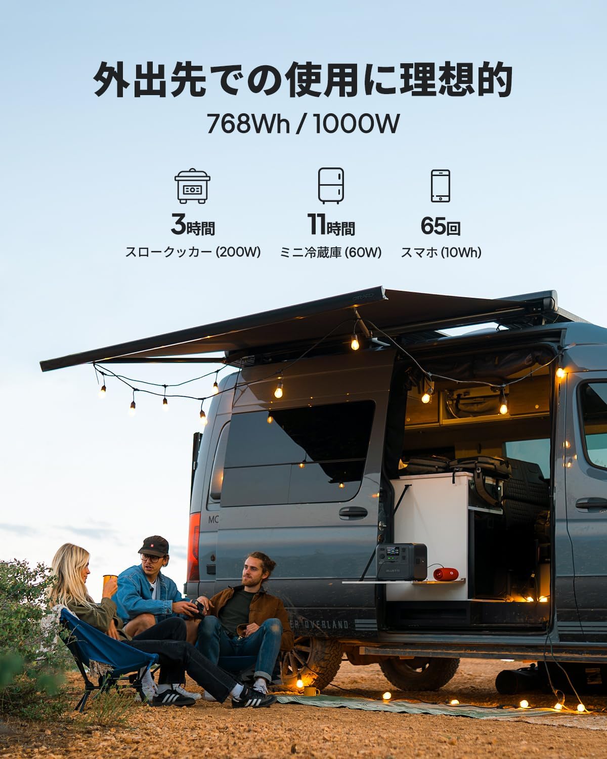 大容量768Wh AC1000W(瞬間最大1500W) 45分で80%まで急速充電 APP遠隔操作 UPS機能