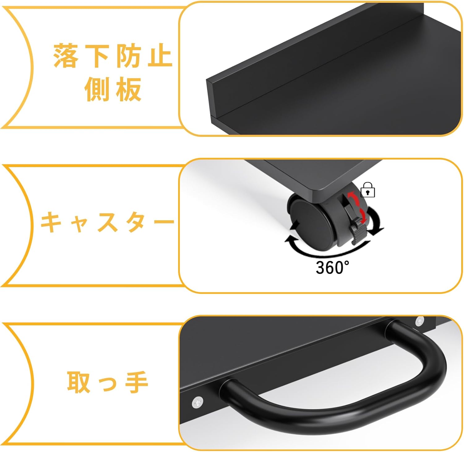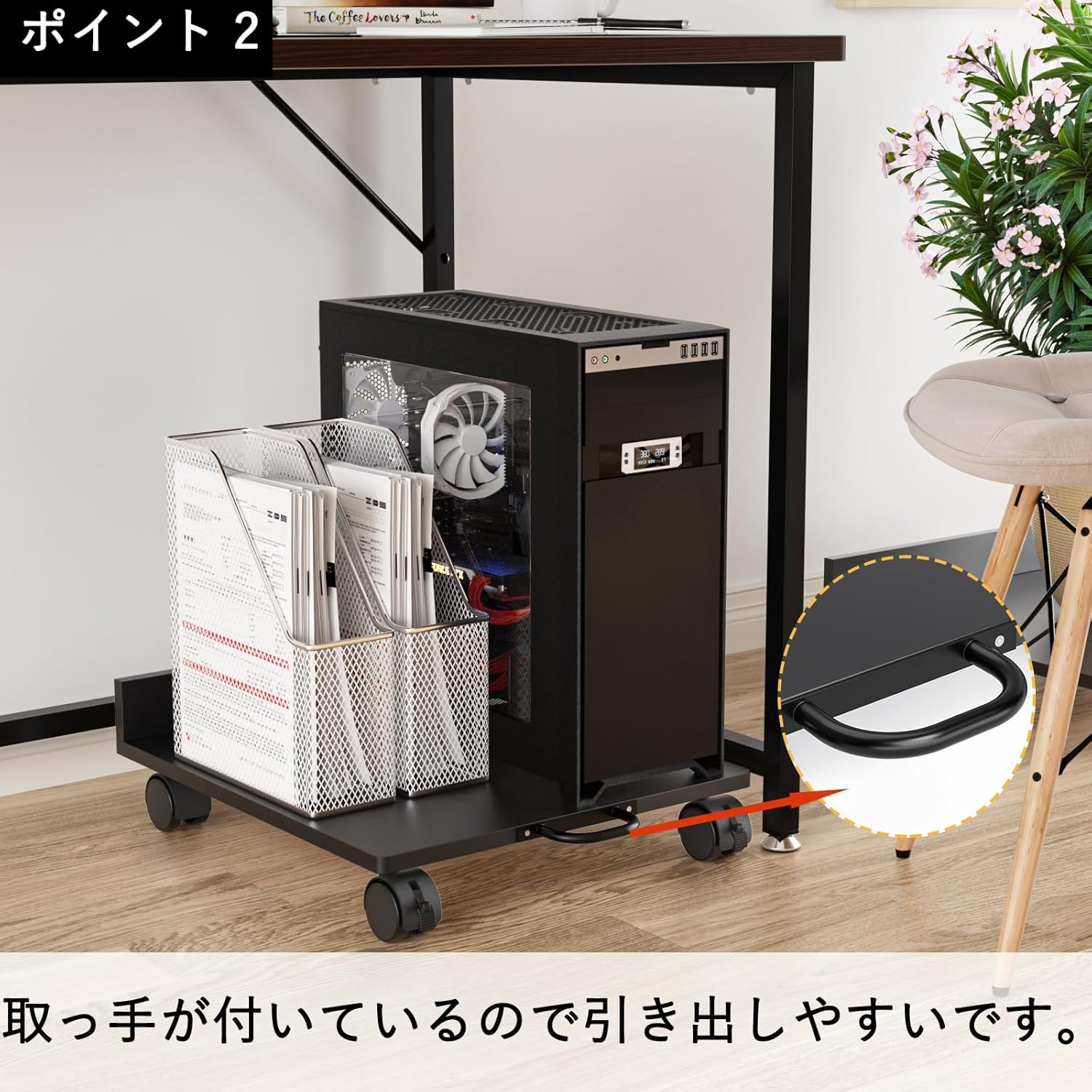 CPUスタンド 移動可能 幅42×奥行46cm 耐荷重30kg 足元収納 PCスタンド キャスター付き台車 PCワゴン