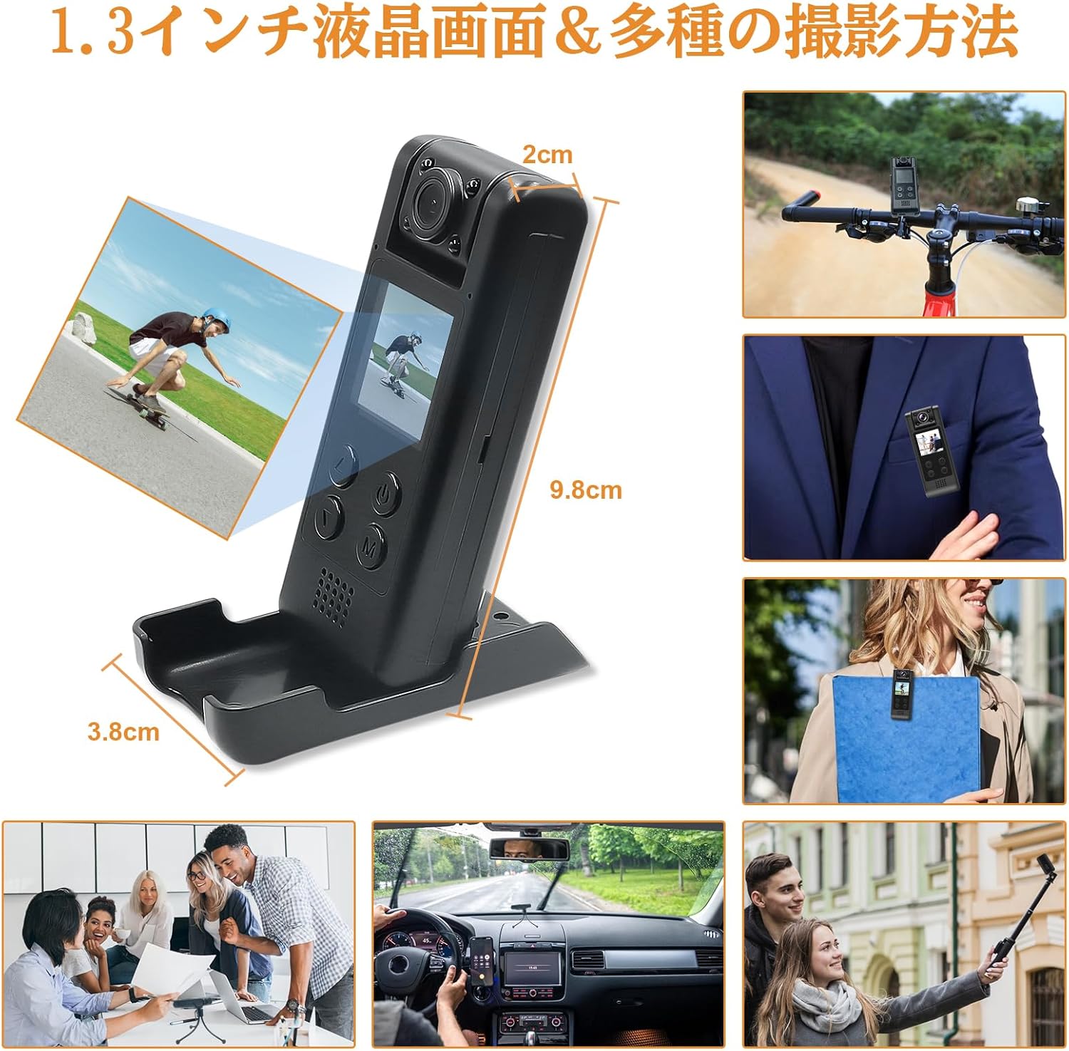 ボディカメラ 1.3インチ液晶画面 180°回転式レンズ 120度広角 256GB 写真撮影 循環録画