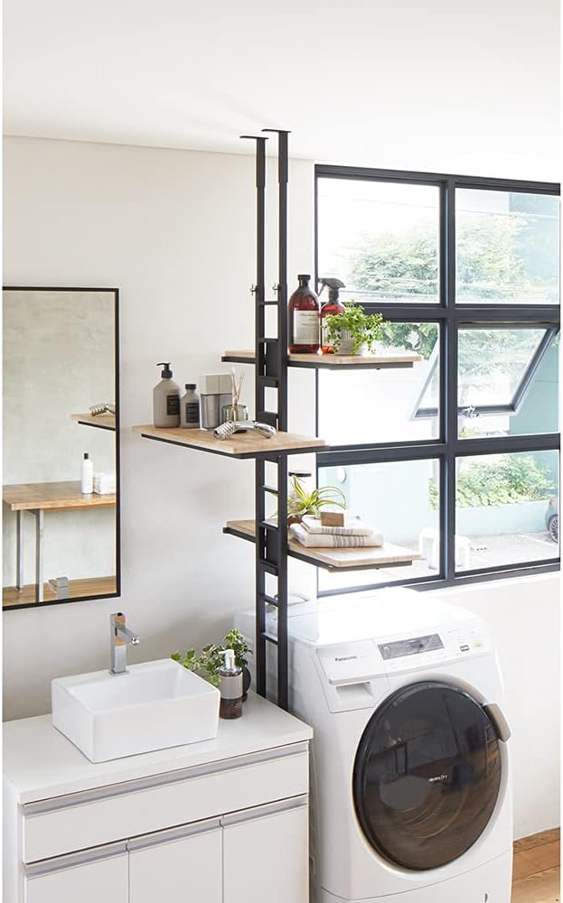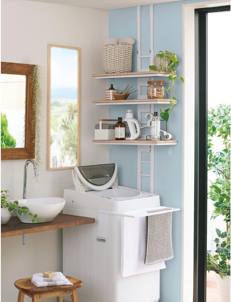 洗濯機の奥にも横にも置ける1本支柱のランドリーラック。