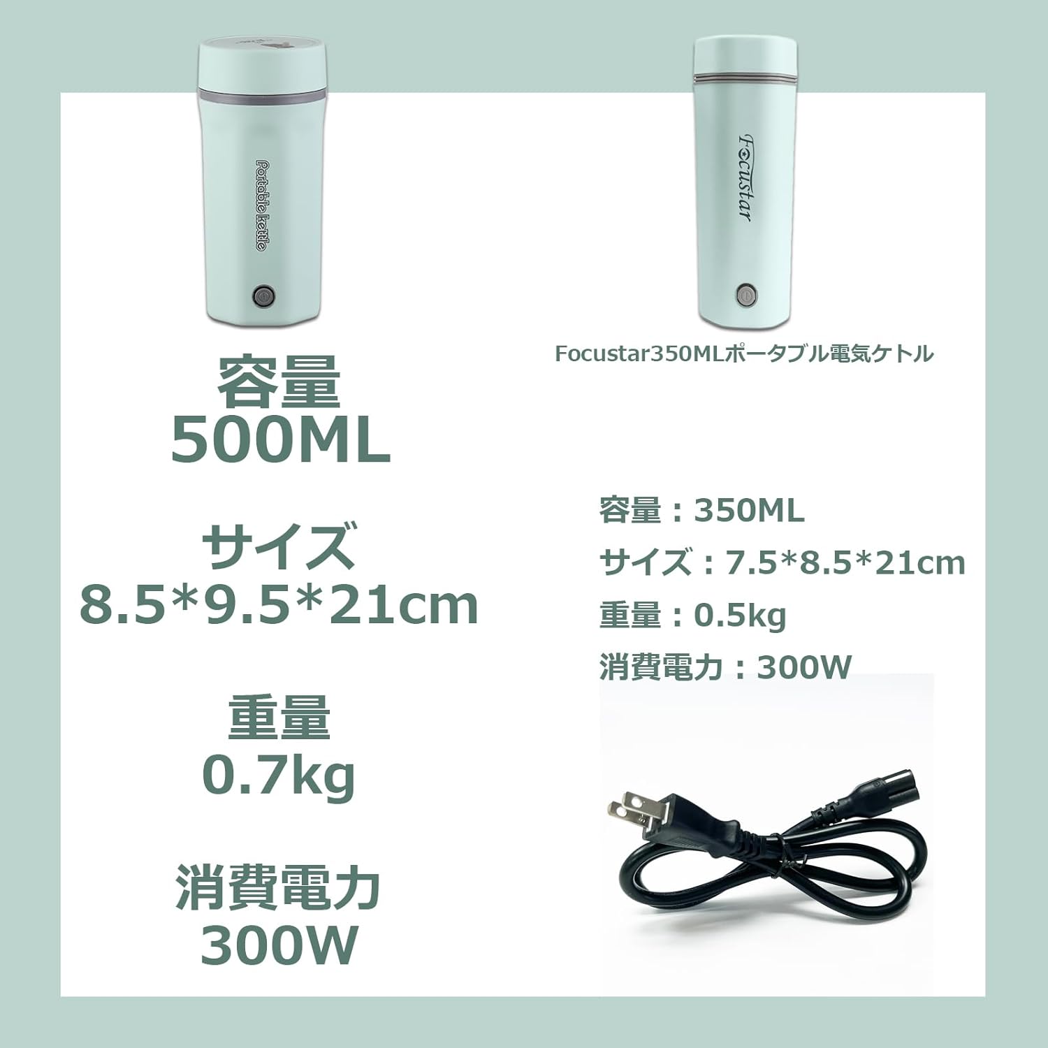 ポータブル電気ケトル 低消費電力 300W 沸騰すると自動OFF 空焚き防止 湯沸かしポット