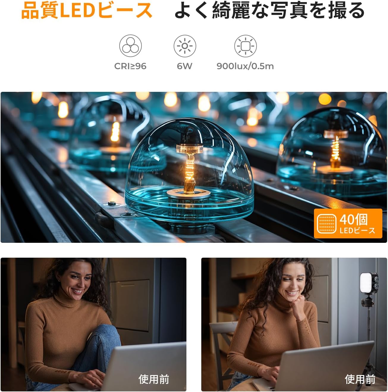 持ち運び LEDビデオライト 照明 撮影用