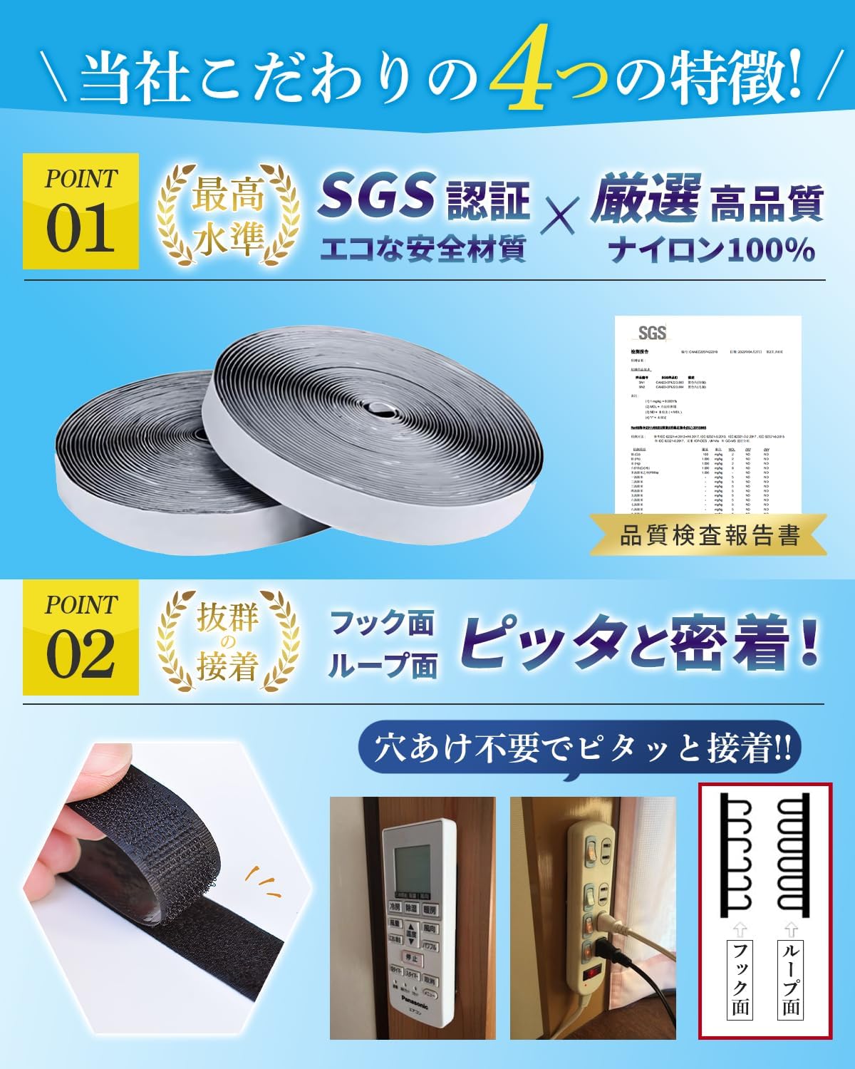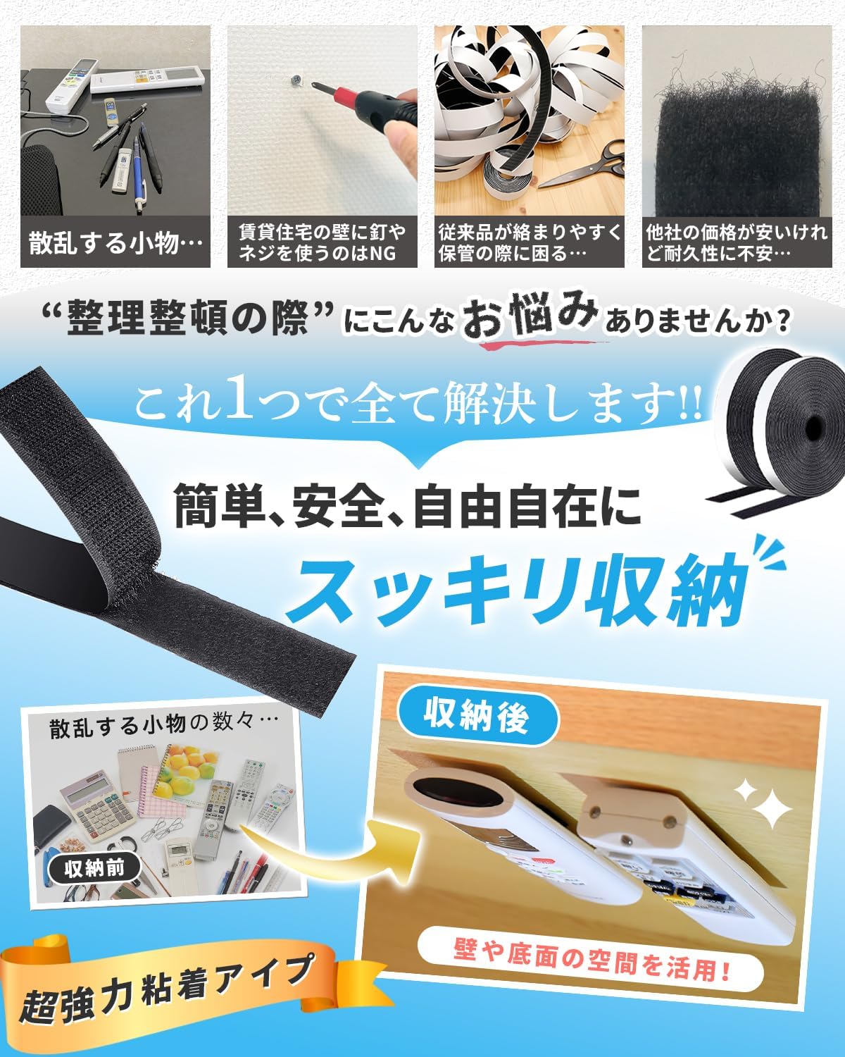 面ファスナー 両面テープ 強力 強粘着 はがせる 防水 耐熱 防震