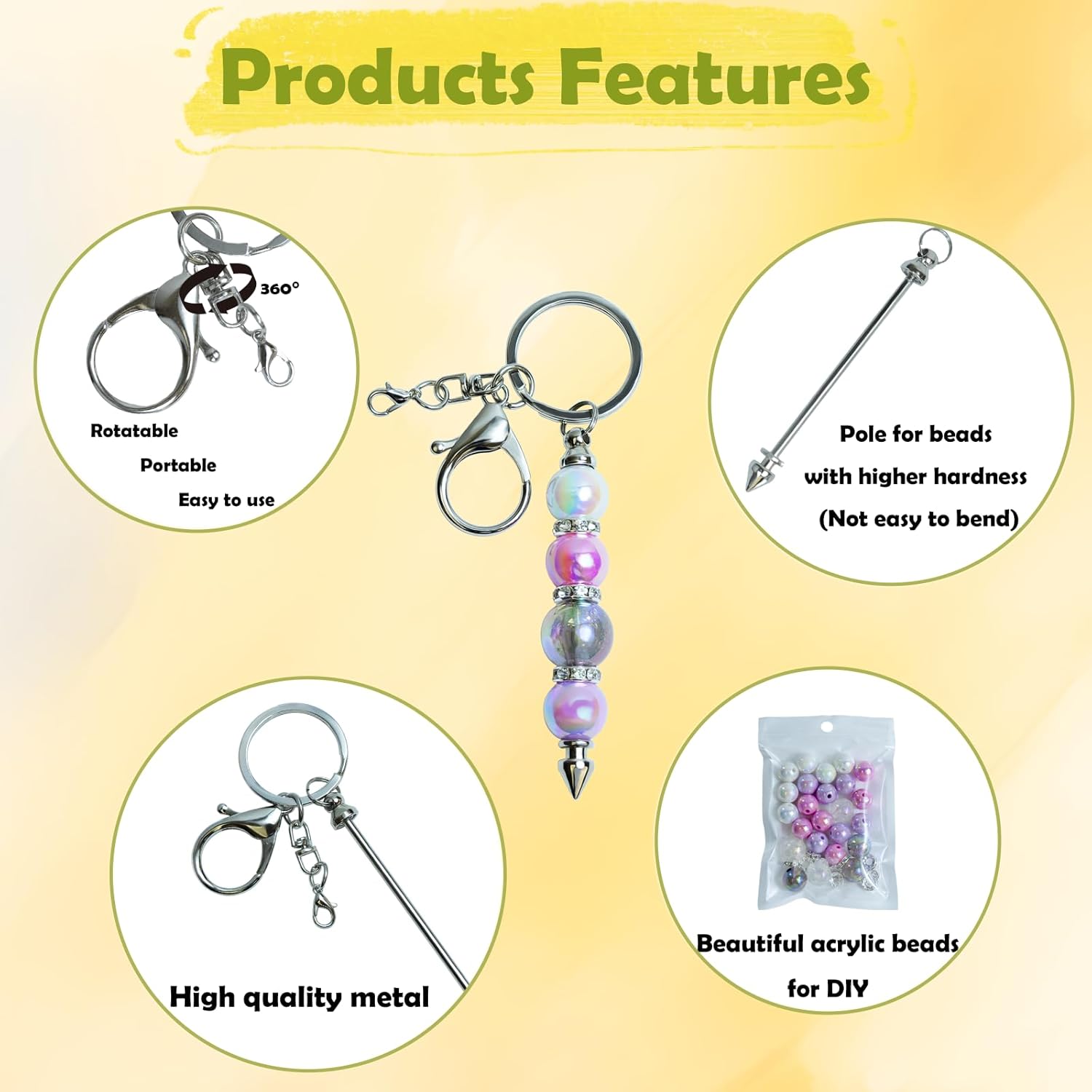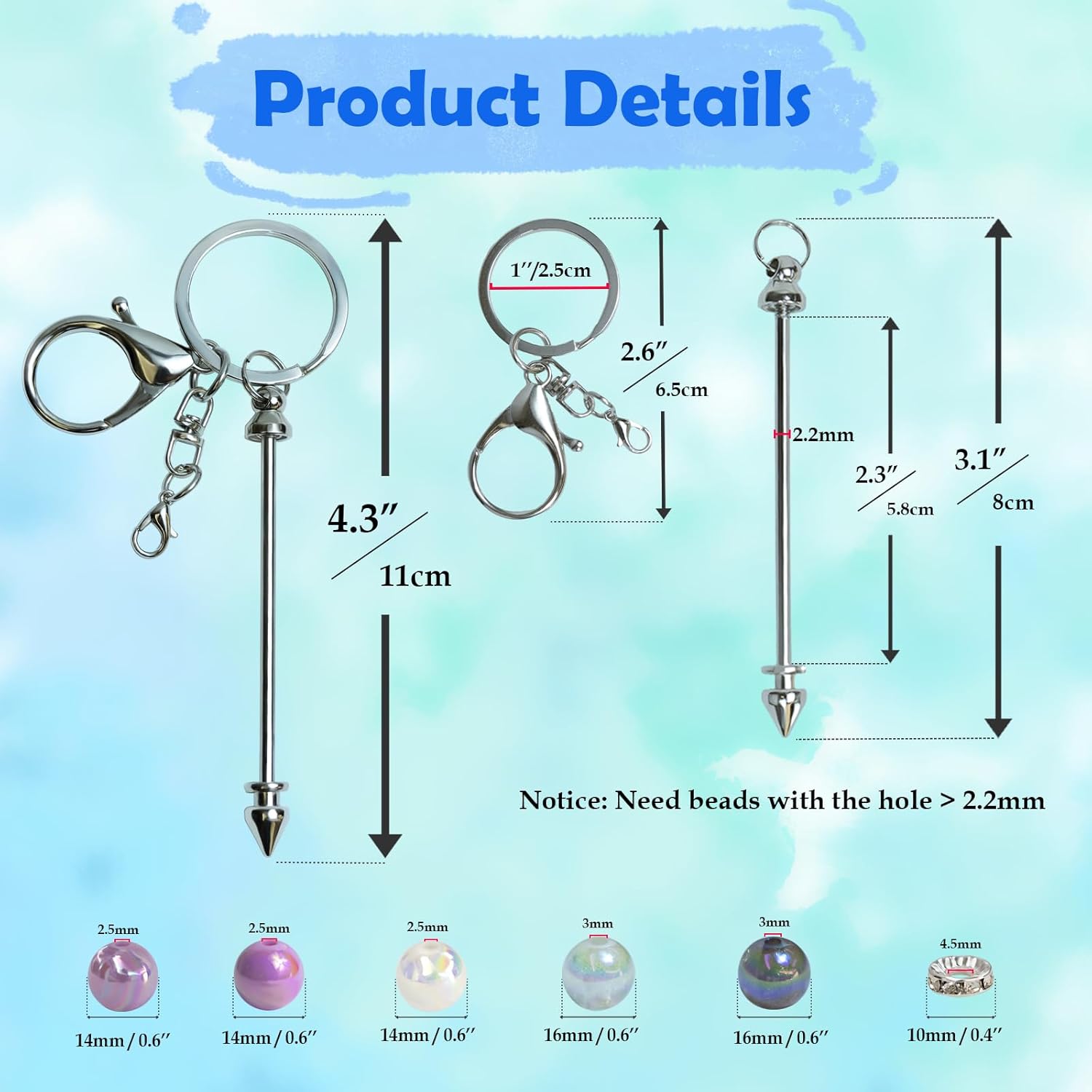 ペンダントDIY用 ブランクビーズ可能キーチェーンバー20個付き アクリルビーズ24個