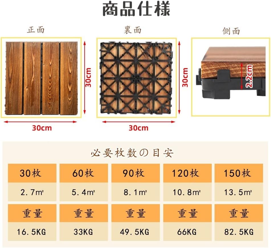 ベランダ/庭/バルコニーDIY用品 木製タイル ベランダ ガーデニング 30×30×2.2cm/枚