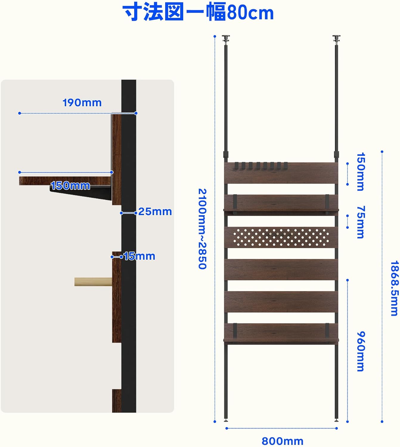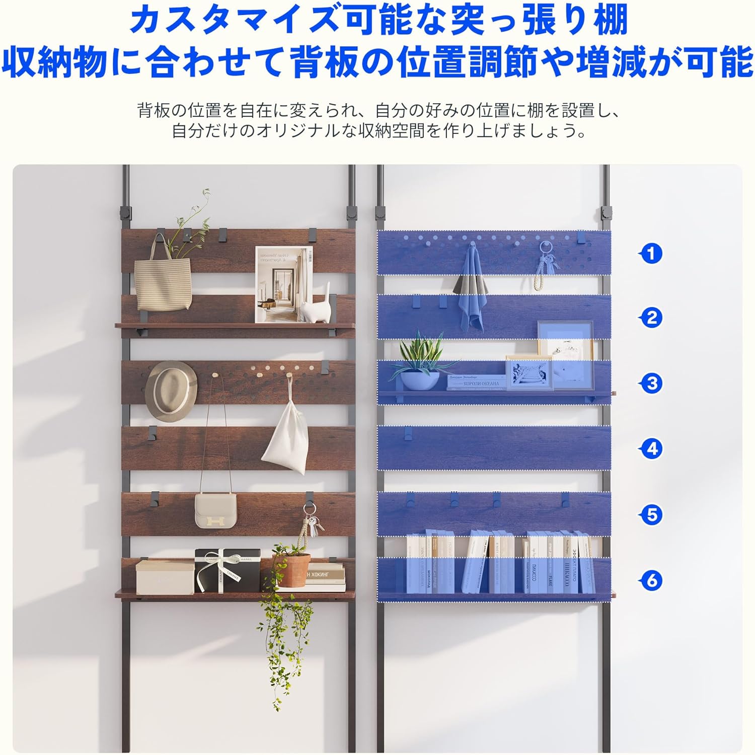 壁面収納 2段 段差対応 木目調 幅80 ウォールラック 可動棚板 DIY