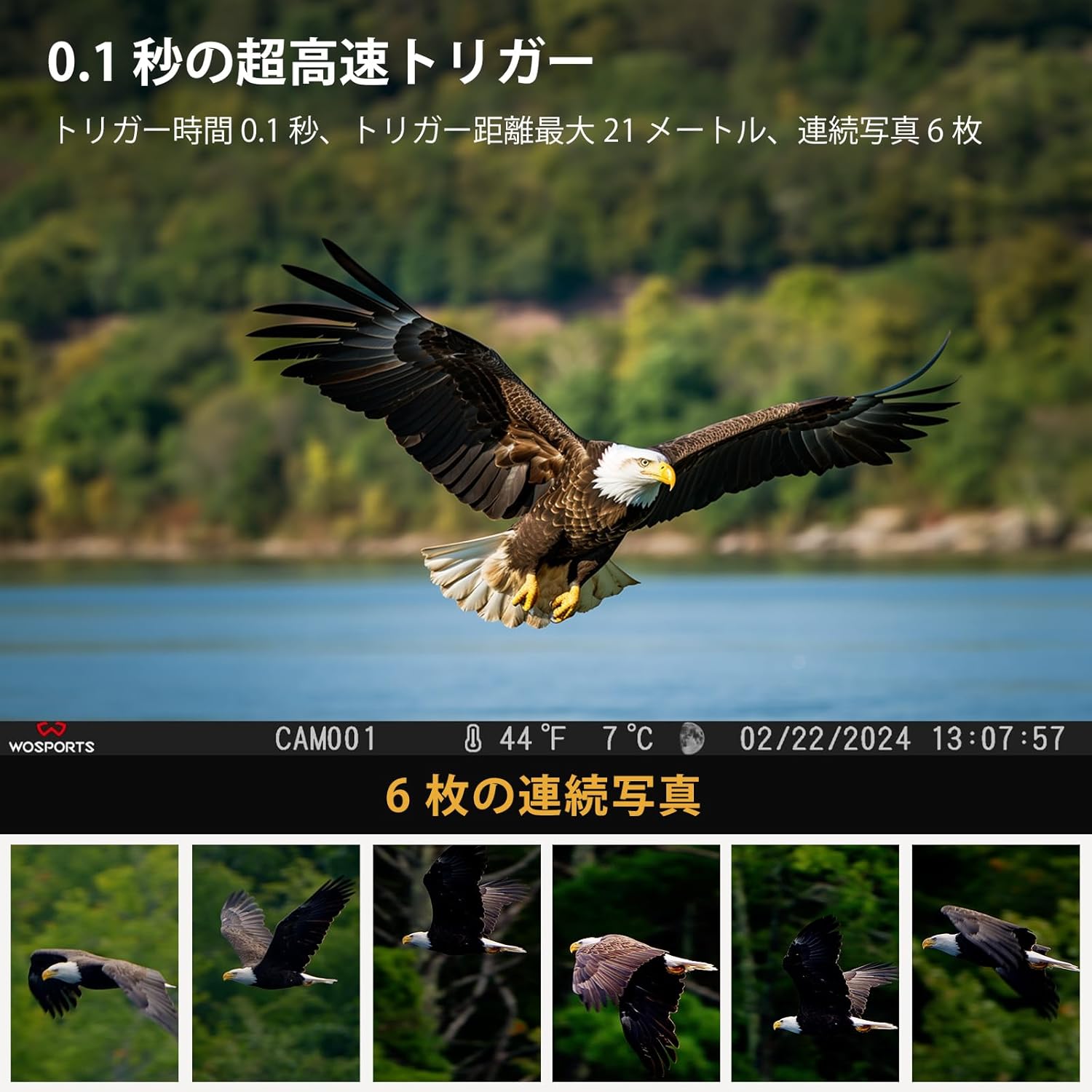 WIFI対応 Wosports 防犯カメラ スマホ対応 赤外線カメラ 7800mAh 充電式ソーラーパネル付き 野生動物監視カメラ 0.01秒超高速トリガー APモード 静止画3300万画素 人感センサー IP66級防水防塵 屋外 監視カメラ 低輝度赤外線LED 暗視 最大256G SDカード対応(別売り) 日本語取扱説明書付き