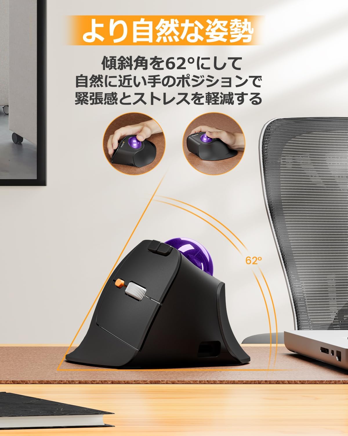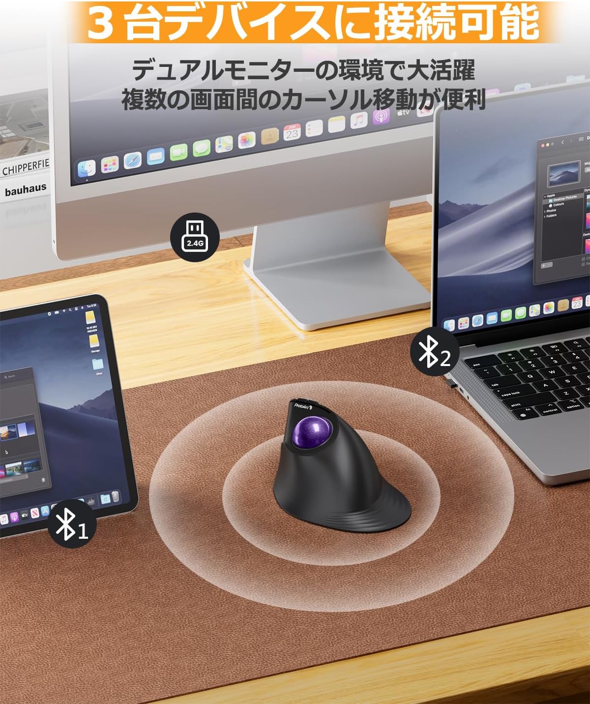 縦型62° 2.4GとBluetooth両対応 ワイヤレスマウス 5段階DPI