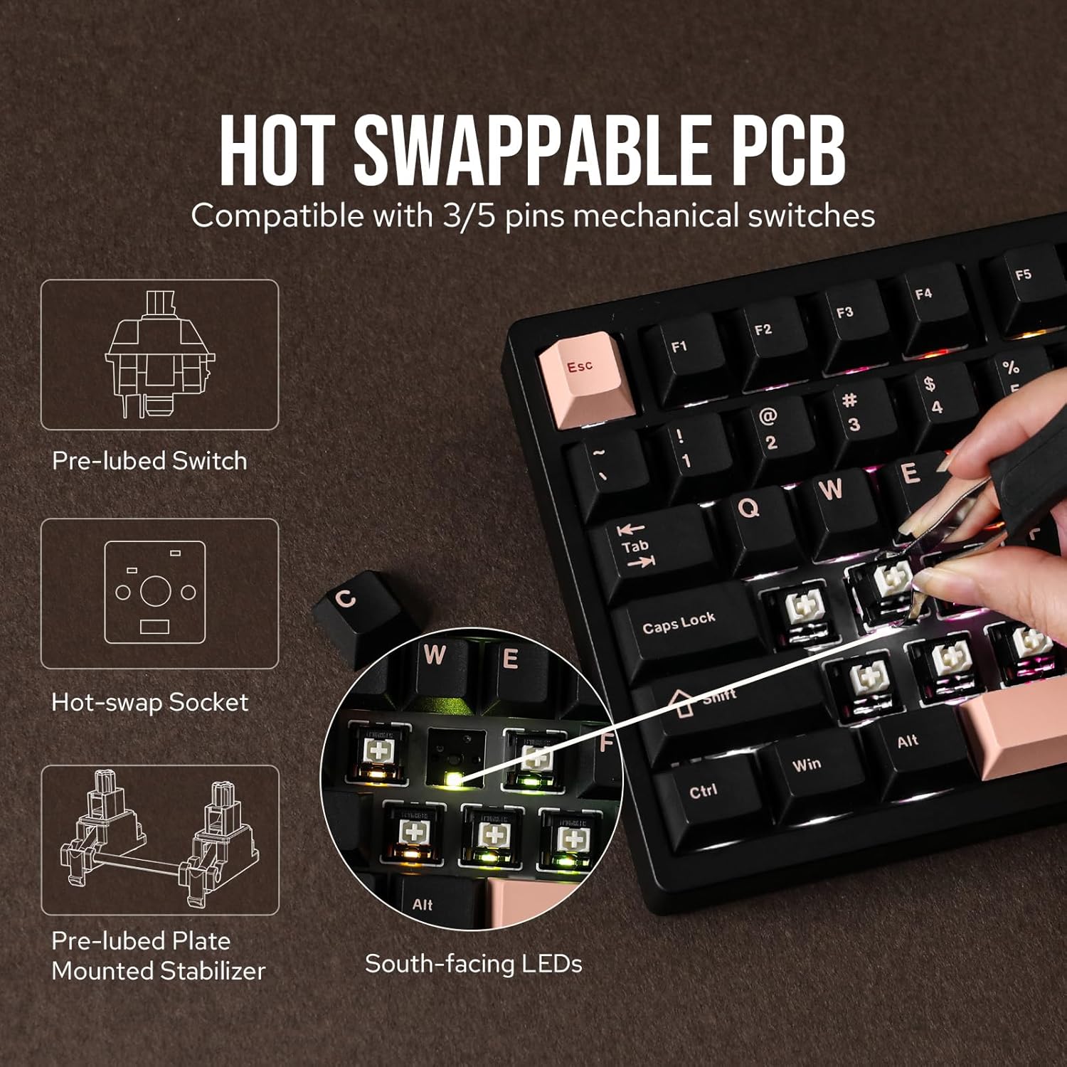 Bluetooth 5.0/2.4GHz無線/USB-Cホットスワップ対応カスタムキーボード PC/タブレット/PS/Xbox用