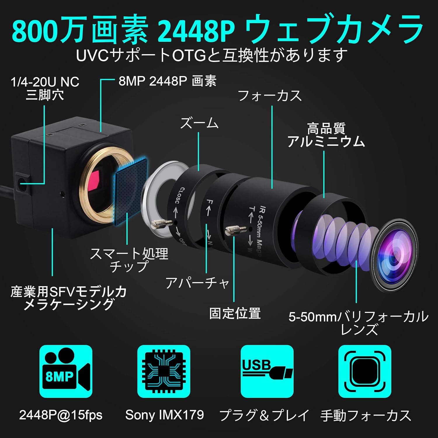 5-50mm手動可変焦点レンズ HD画質 8MPズームウェブカメラUSB CMOS IMX179搭載