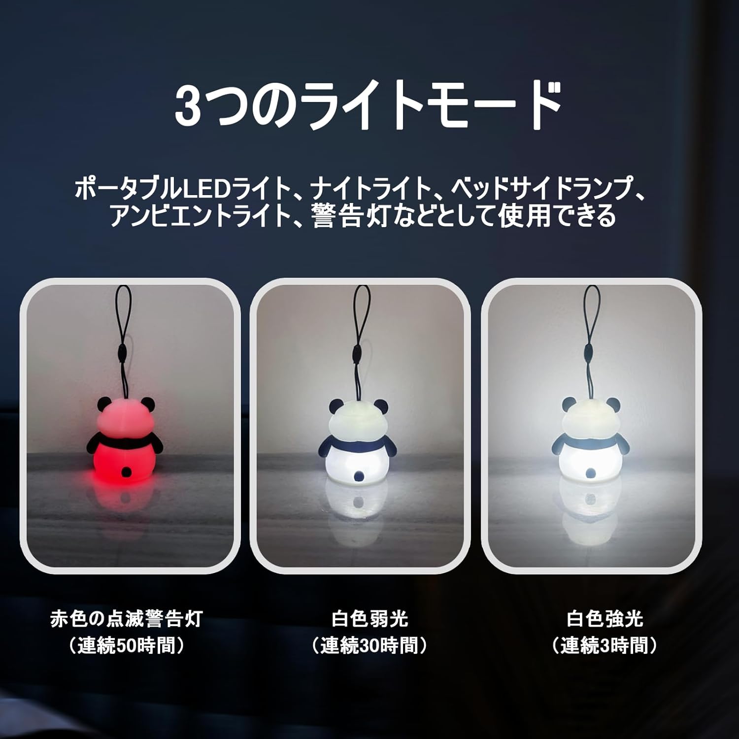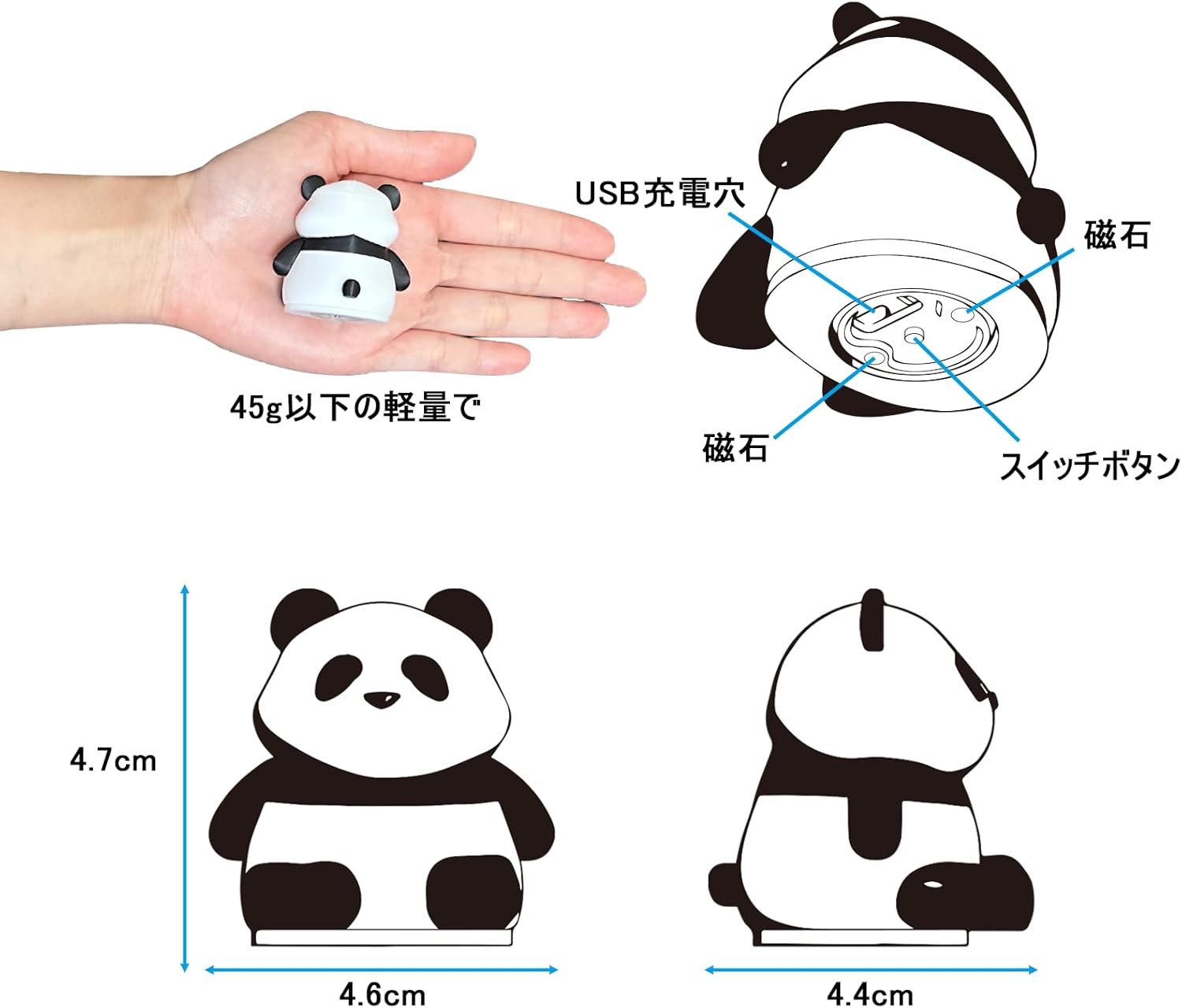 LEDライト ナイトライト ベッドサイドランプ 超小型 USB-C充電式 3モード 3Dプリント ルームライト 雰囲気作り インテリア 目に優しい マグネット内蔵 点灯3~50時間 (パンダ2)