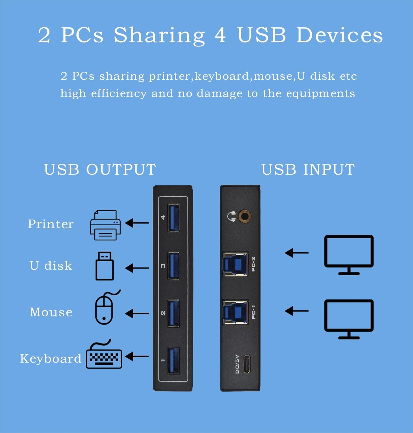コンピューター 共有 4 USB 3.0 周辺機器 3.5mm オーディオポートスイッチャー