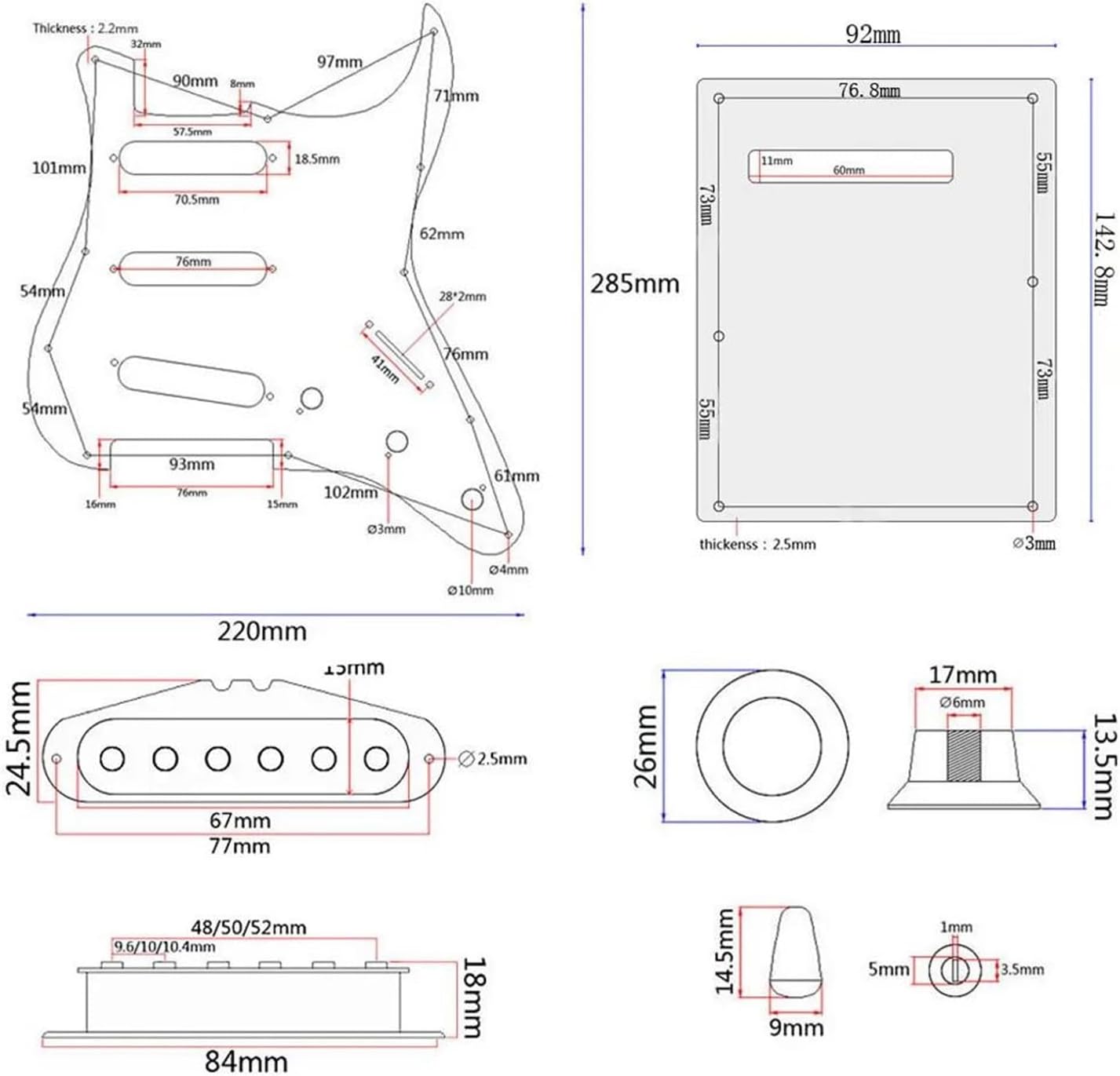 DIY アクセサリー キット (配線済みピックガード ブリッジ SSS ピックアップとその他のギター アクセサリーを含む)