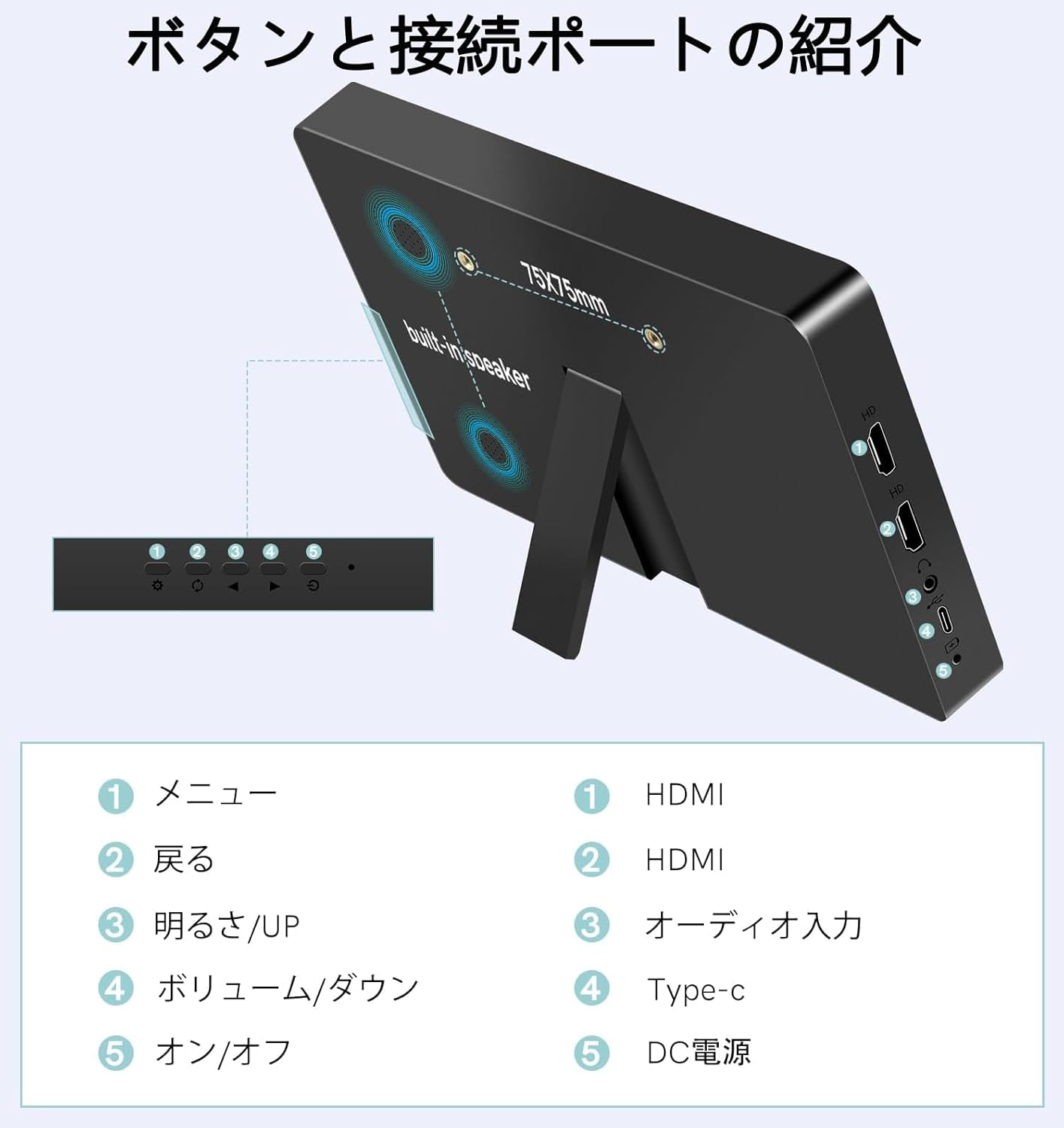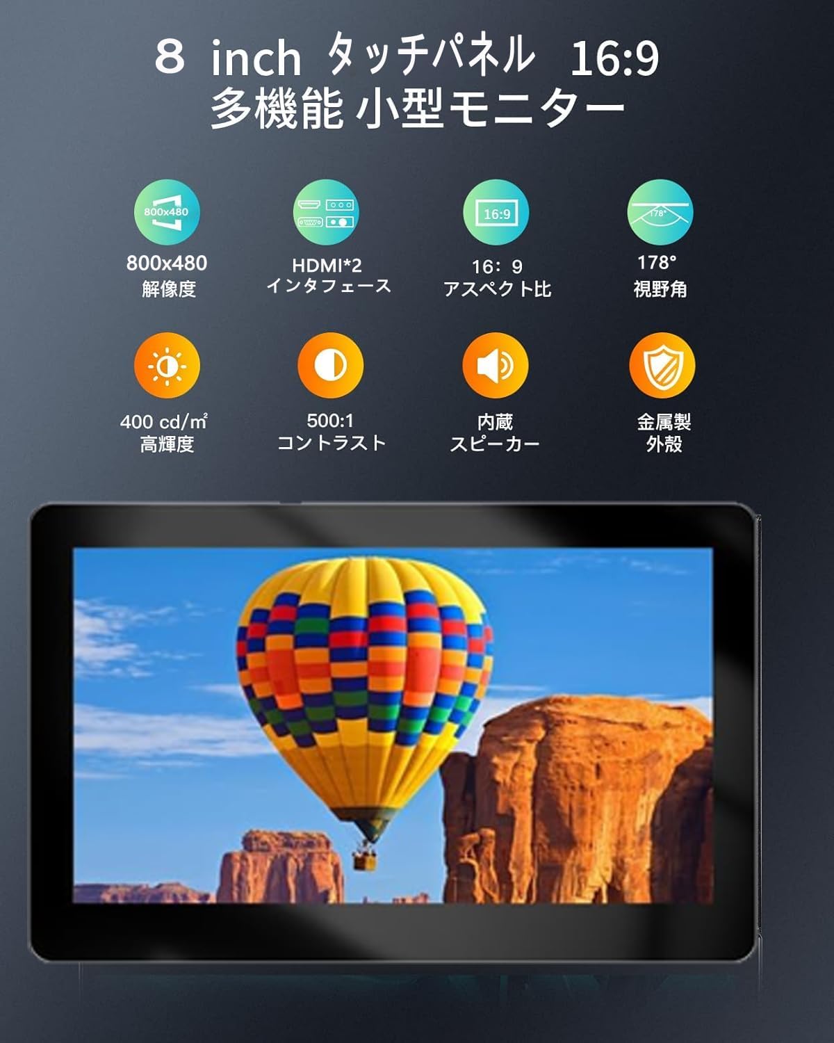 8 インチ タッチパネル モバイル モニター HD小型モニター HDMI/USB Type Cビデオ入力付き
