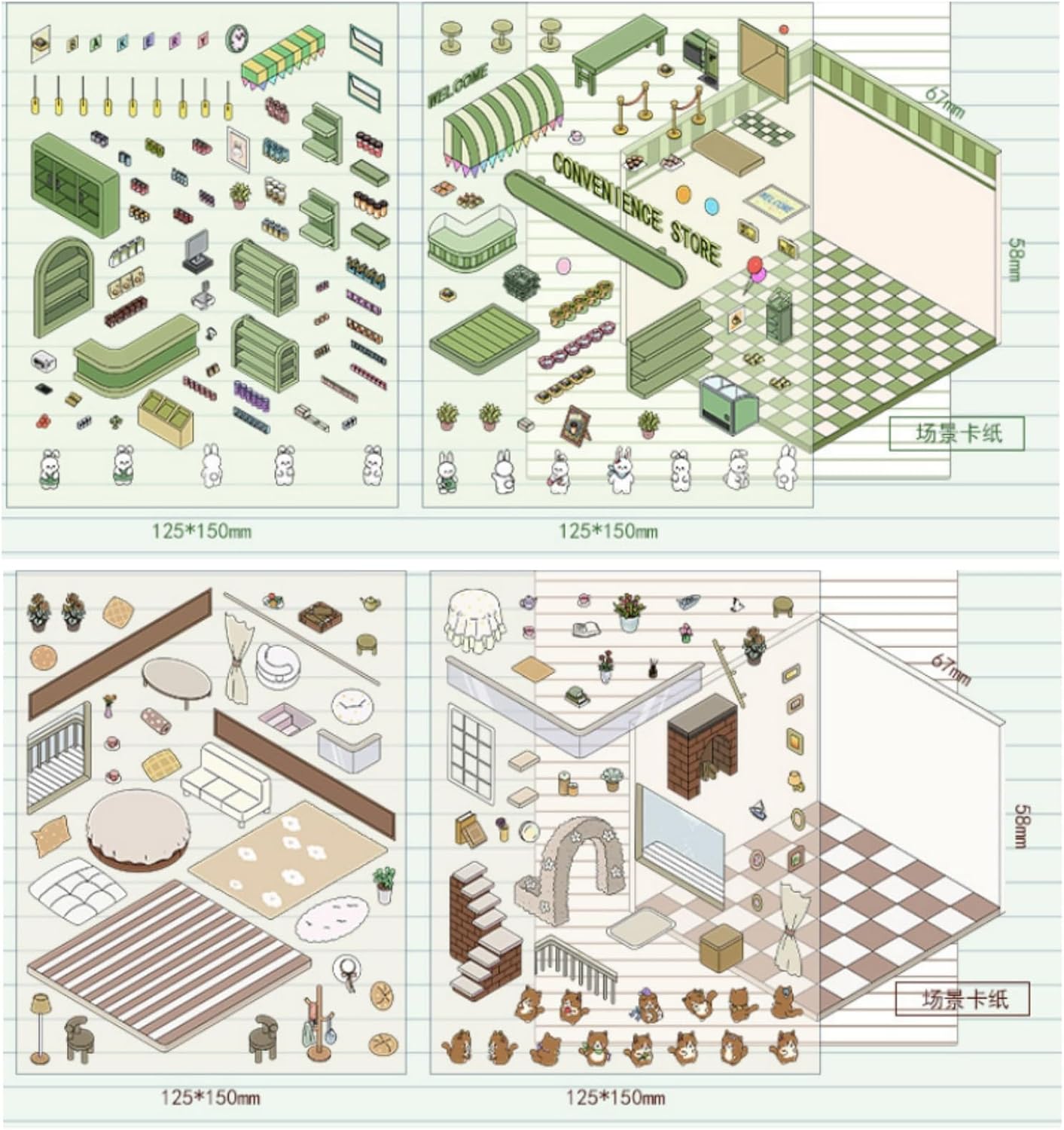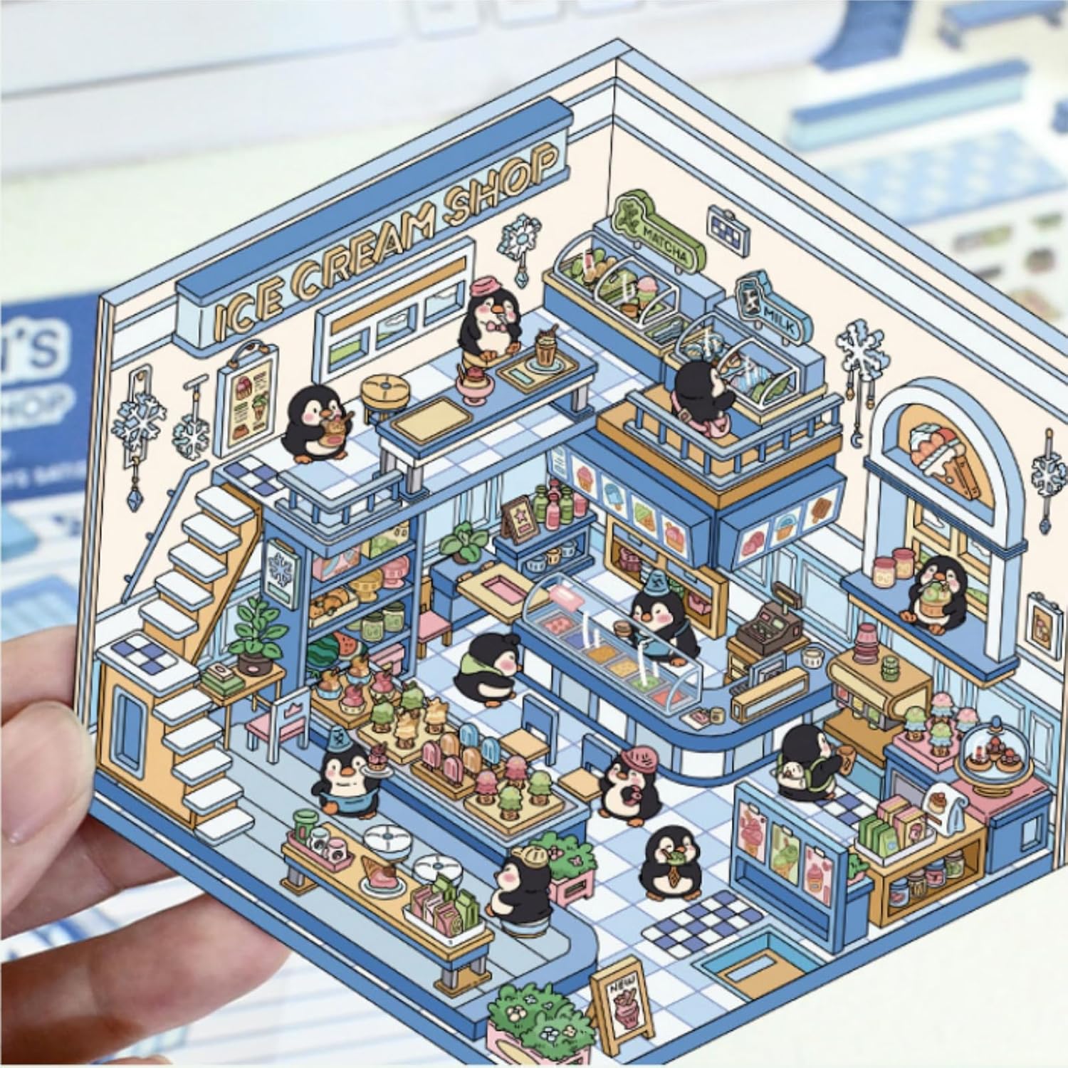 韓国系 ニッチ ストレス解消 可愛い シール 趣味日記帳 DIY 3D ハウスステッカー 立体