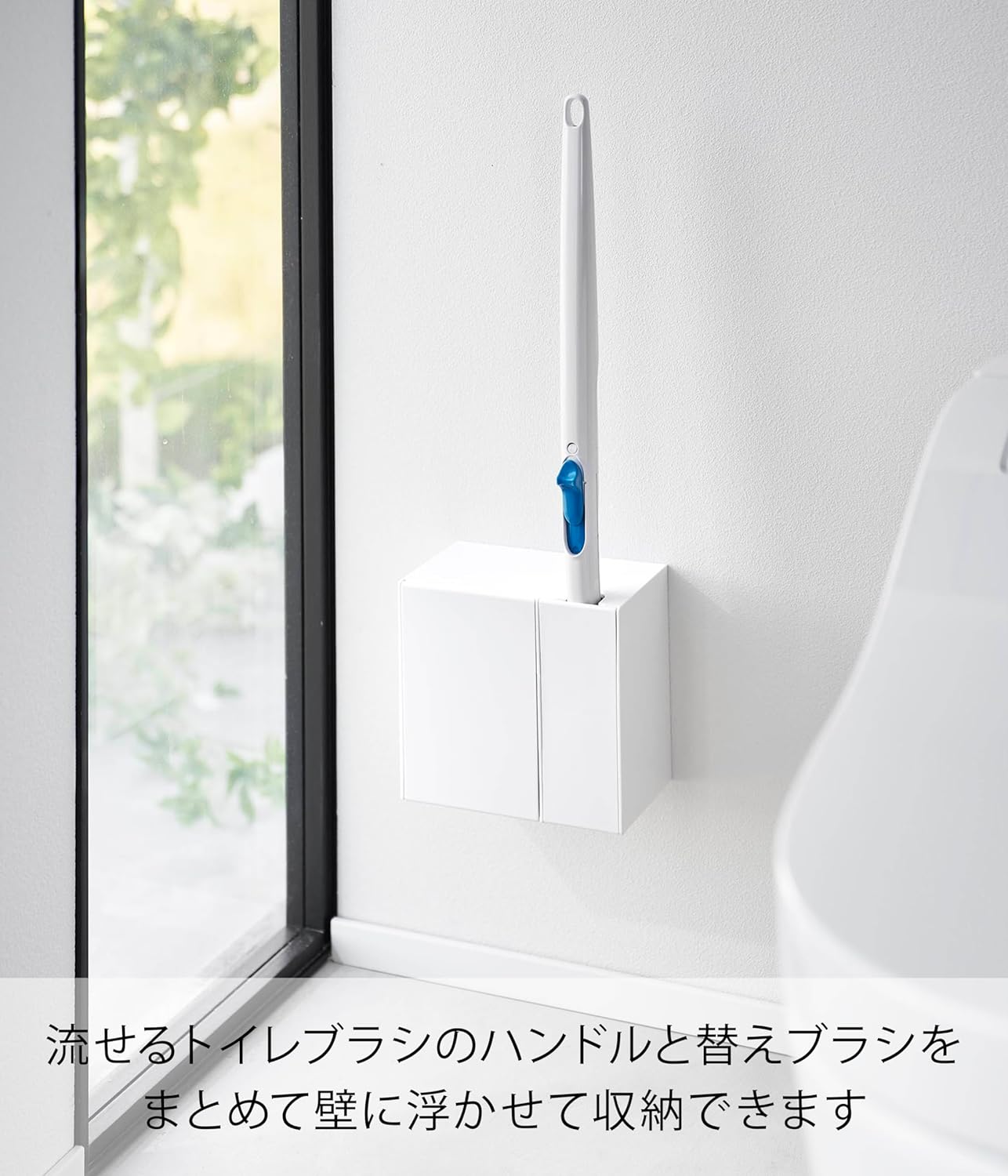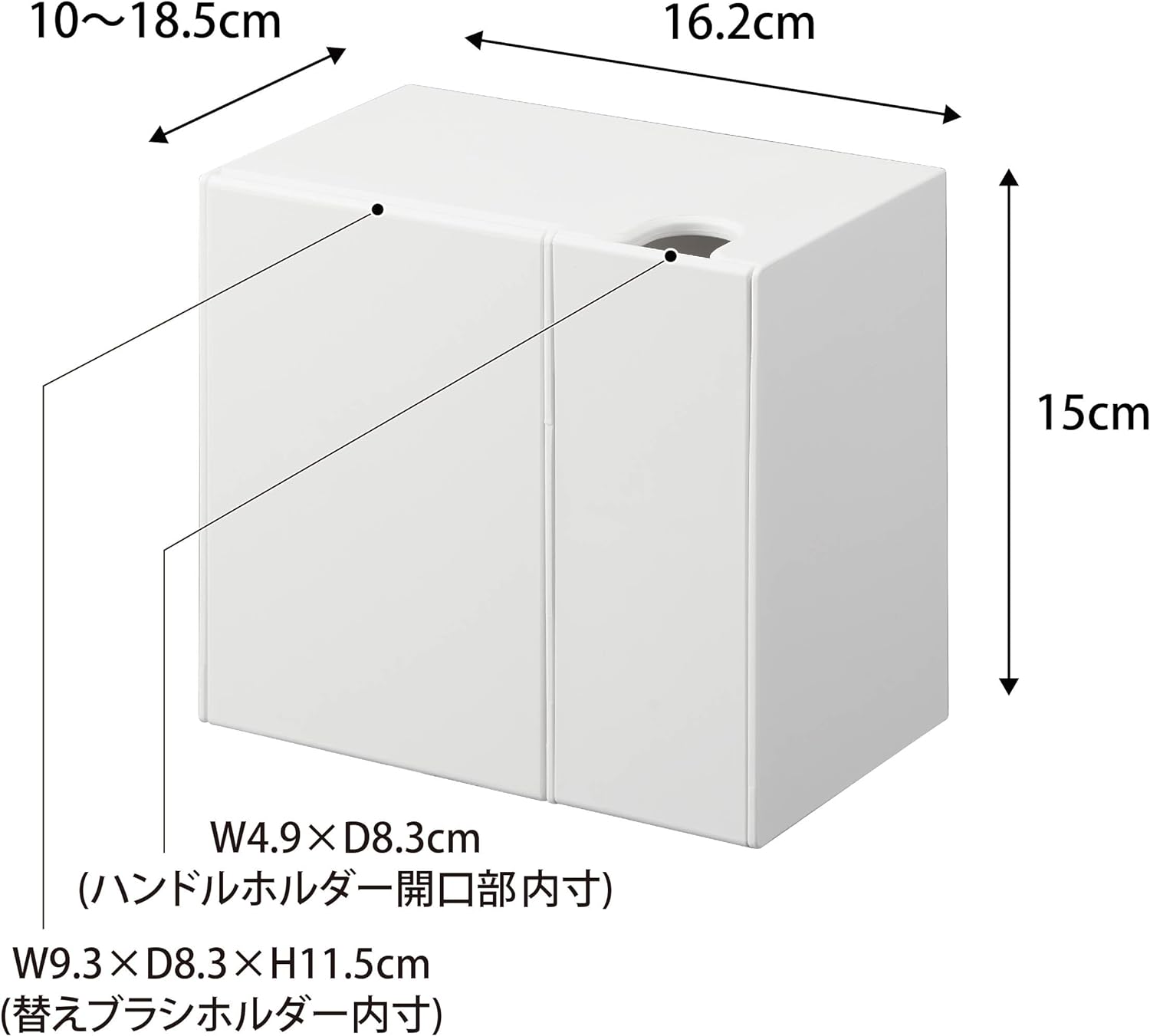 石こうボード壁対応 ホワイト W16.2×D10〜18.5×H15cm タワー tower 浮かせる収納 取り出しやすい トイレブラシケース 1840