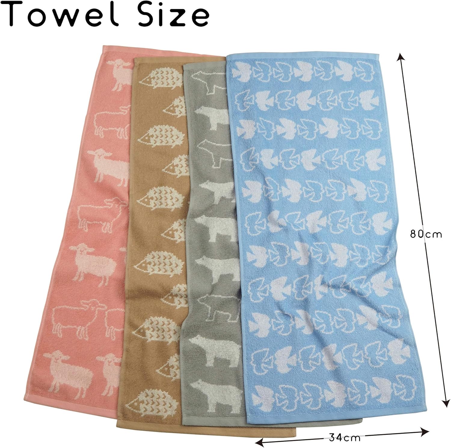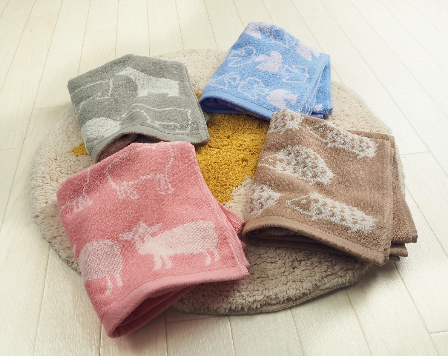 Kosugizen フェイスタオル 北欧アニマル 4色(4柄)各1枚入